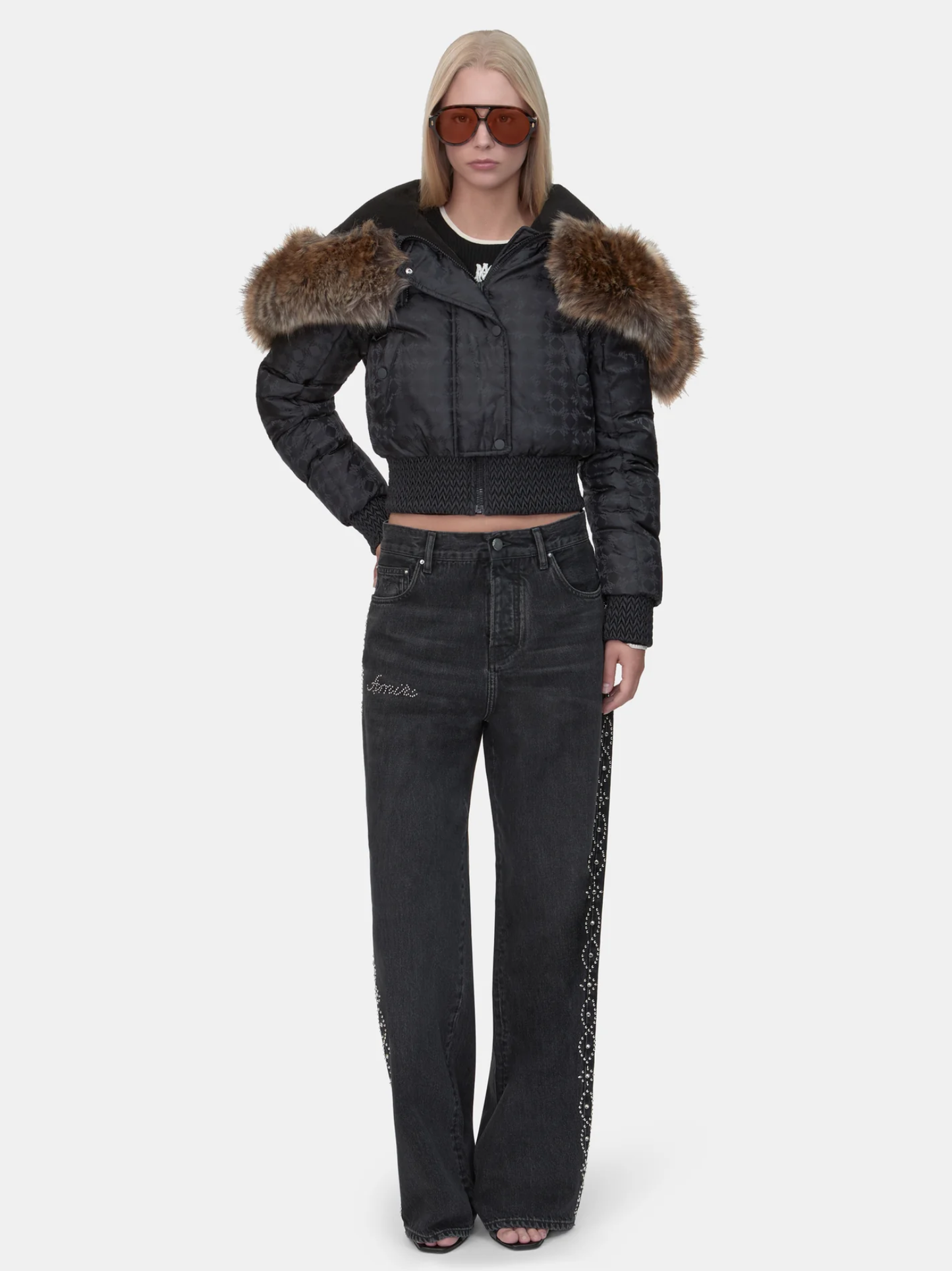 BAGGY JEAN WITH STUD DETAILING, FIVE-POCKET CONSTRUCTION AND STUD RENDITION OF HOUSE SCRIPT LOGO.