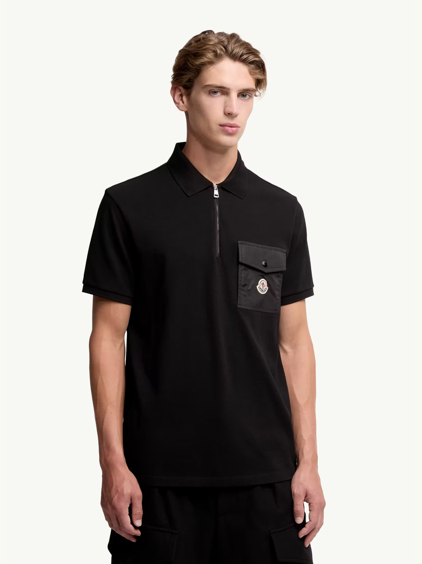 MONCLER Cotton Piquet Polo Shirt with Pocket Black