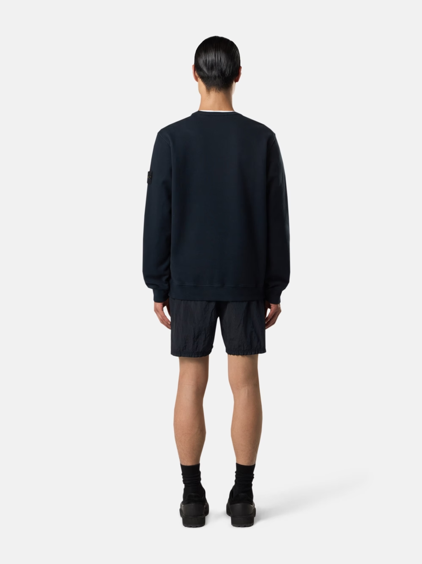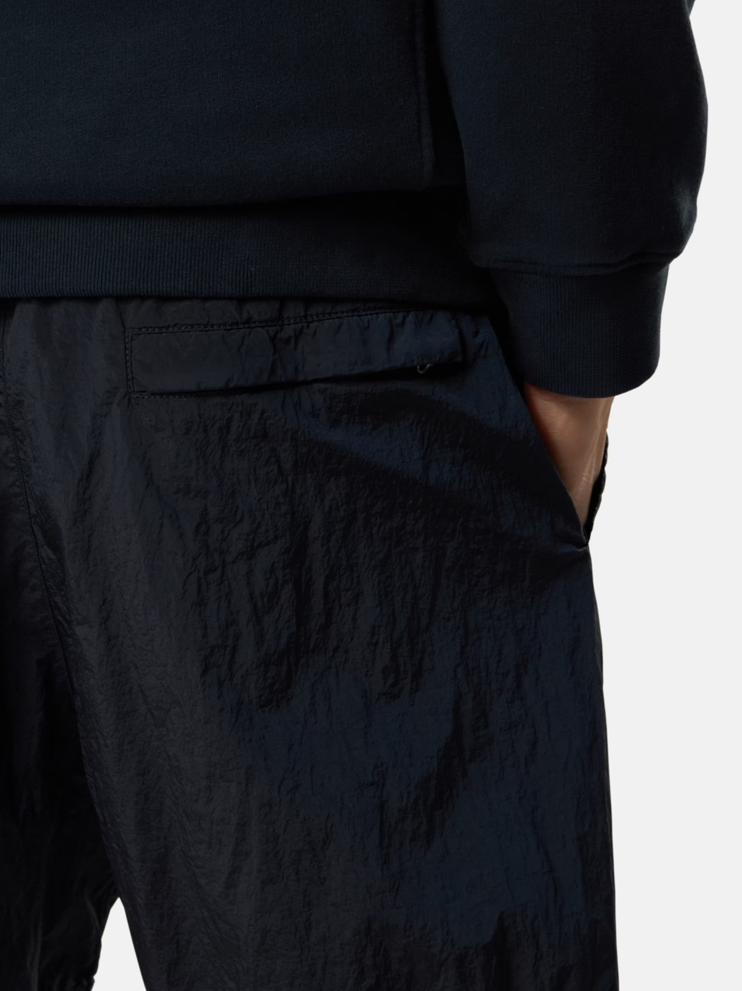 Mid-length swim shorts in Nylon Metal made with ECONYL® regenerated yarns, featuring hand pockets, a back zip pocket, elasticated drawstring waistband, and mesh lining. Garment dyed.