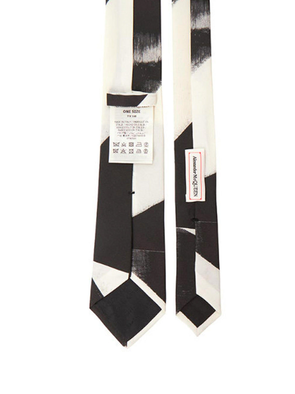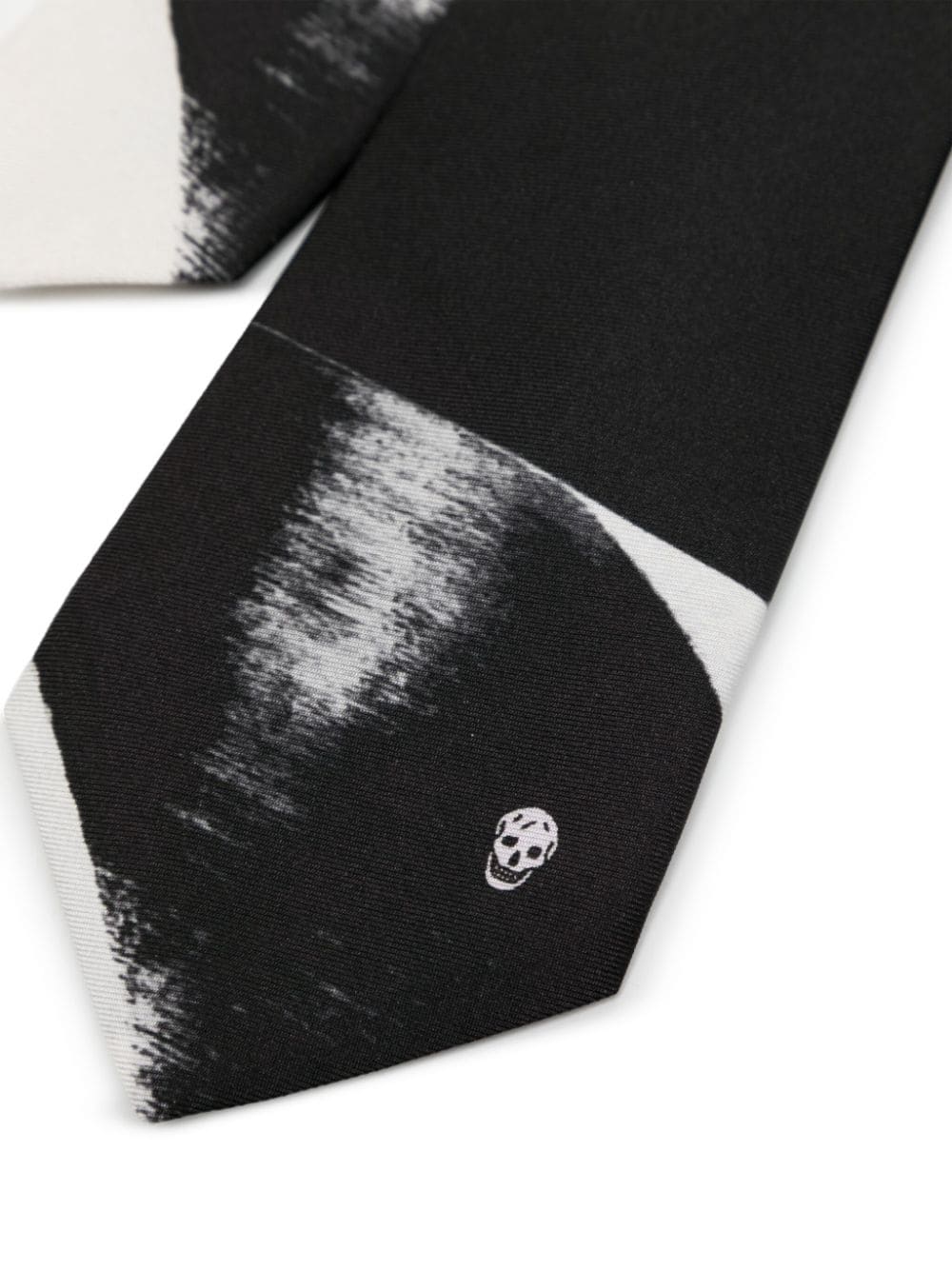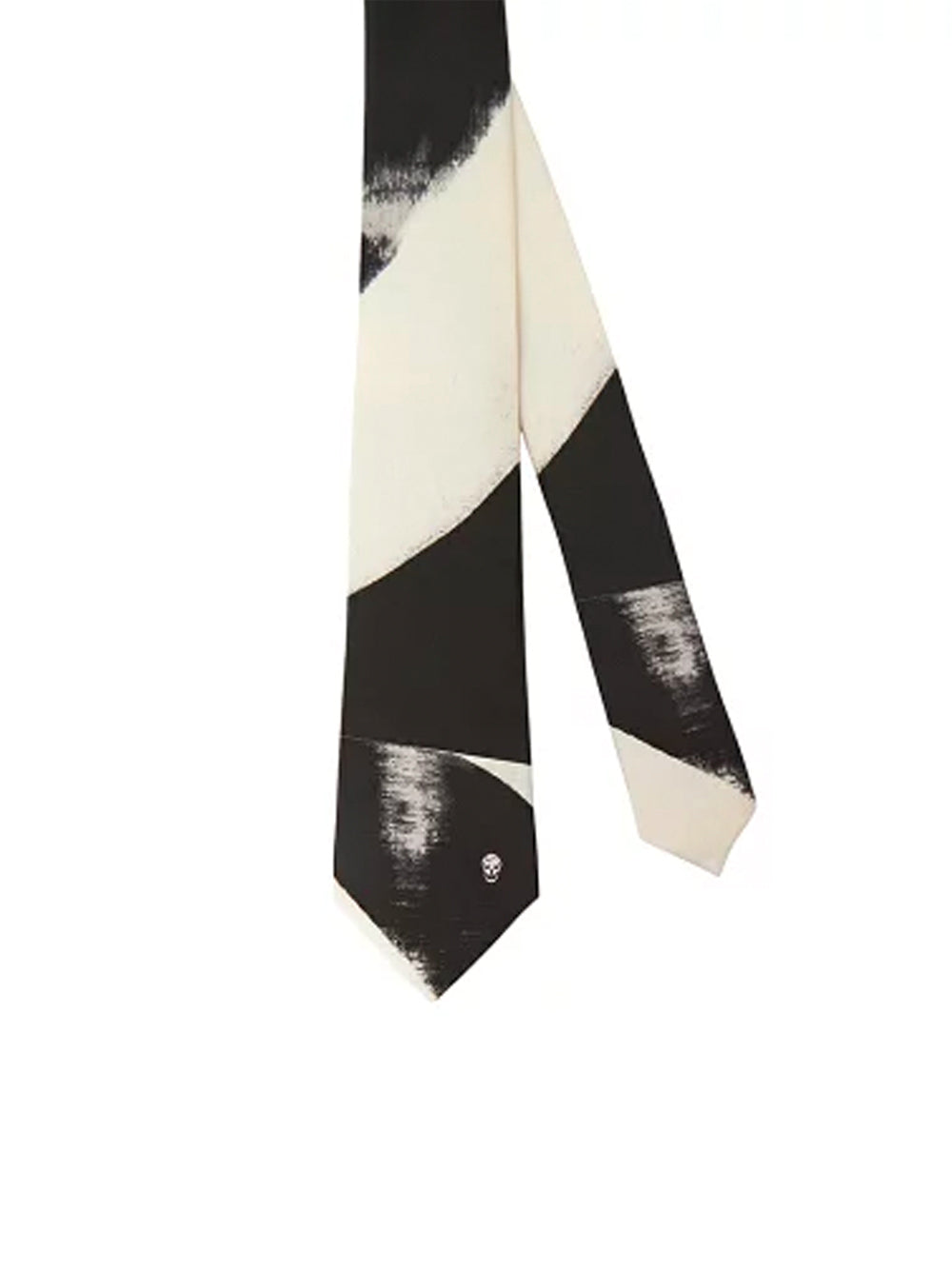 ALEXANDER MCQUEEN Logo Stamp Printed Organic Silk Tie Black Ivory