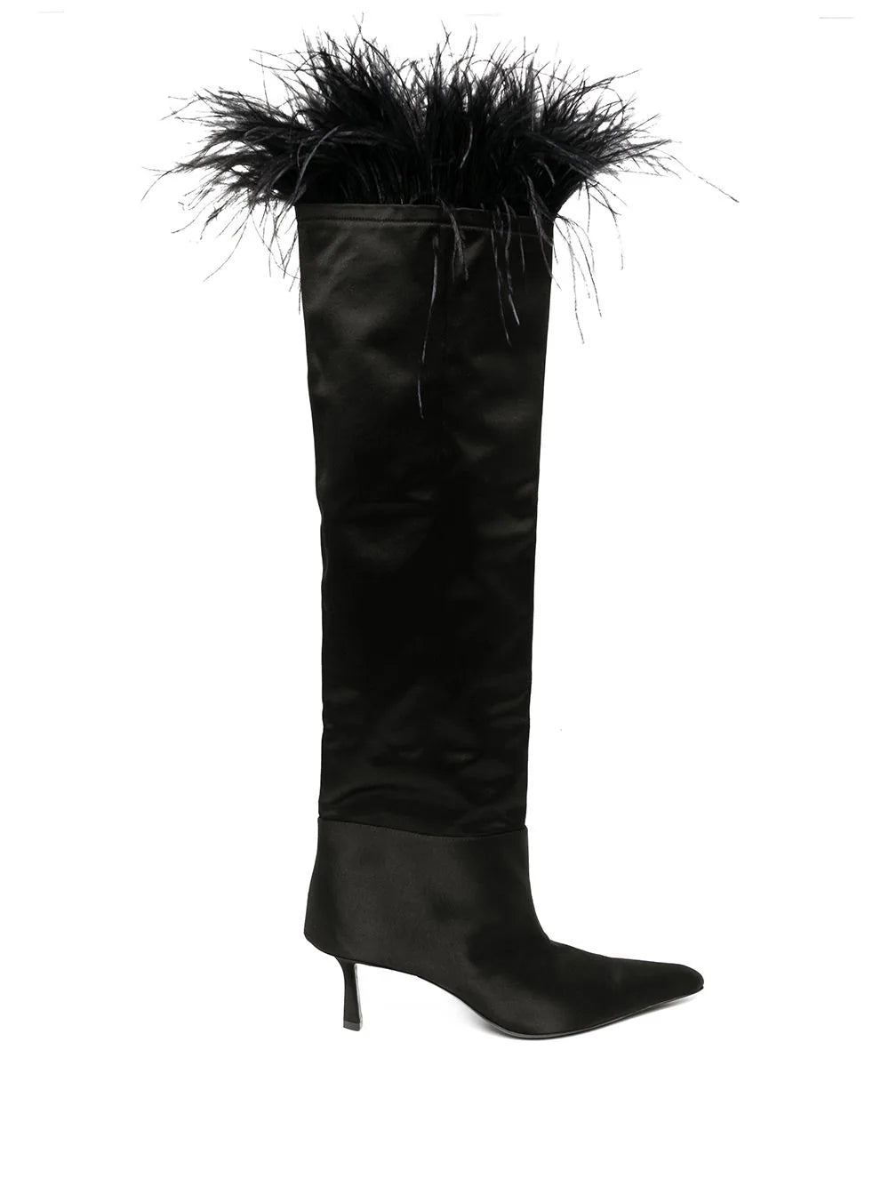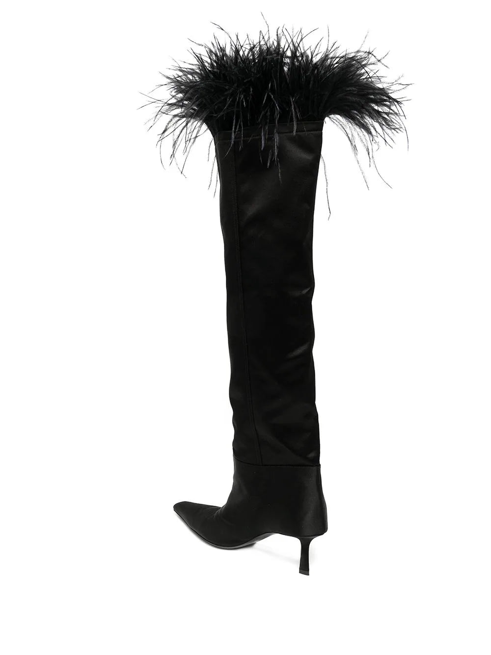 ALEXANDER WANG WOMEN Viola Feather-Trim Satin Boots Black