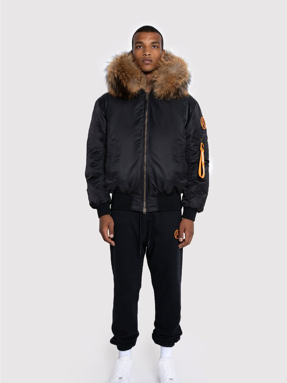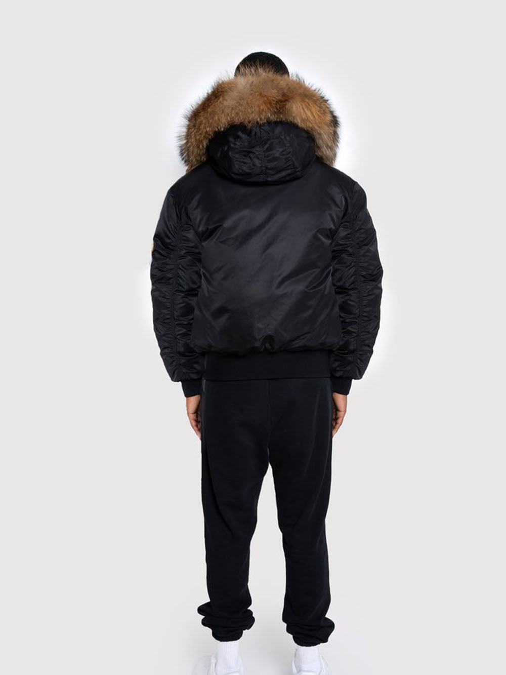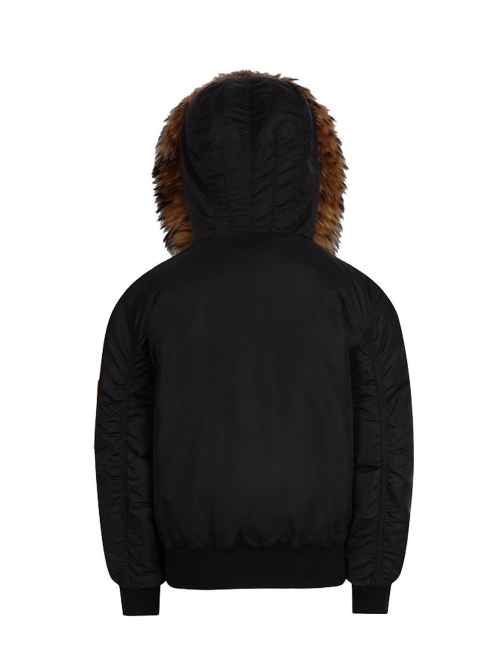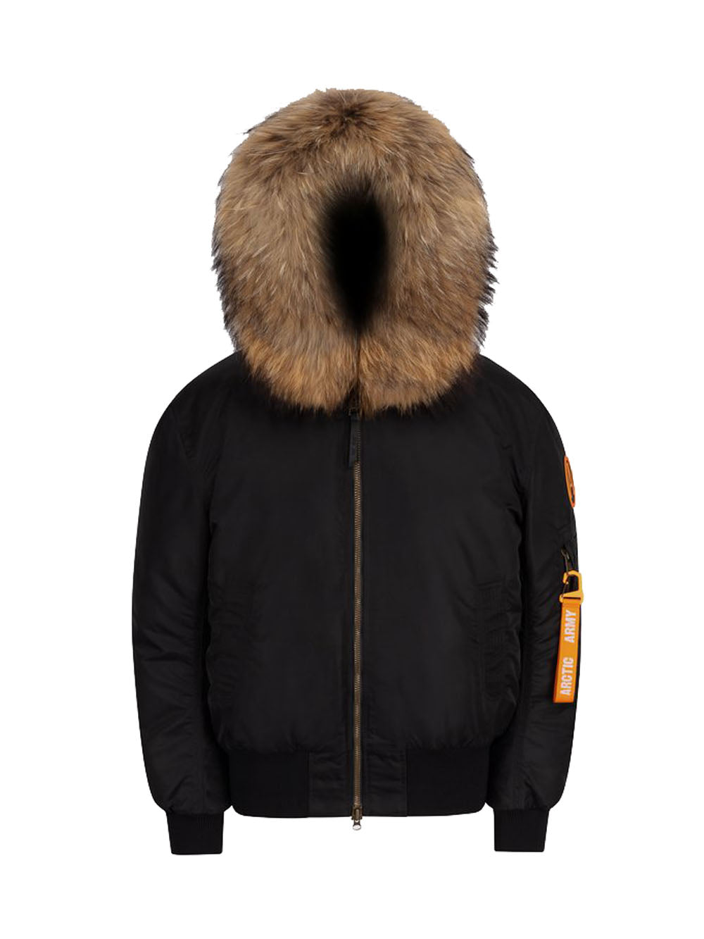 The next-generation Arctic Army bomber jacket has been redefined for the new collection. Constructed from durable, smooth nylon twill, the iconic zip-through military inspired jacket is filled with 'Responsible Down Standard' (RDS) fill and oversized Saga* fur hood trim for peak insulation. The men's jacket features fleece-lined magnetic pockets and heavy rib cuffs and waistband whilst the Arctic Army soldier beetle badge is detailed the left sleeve with our signature flight jacket tag.