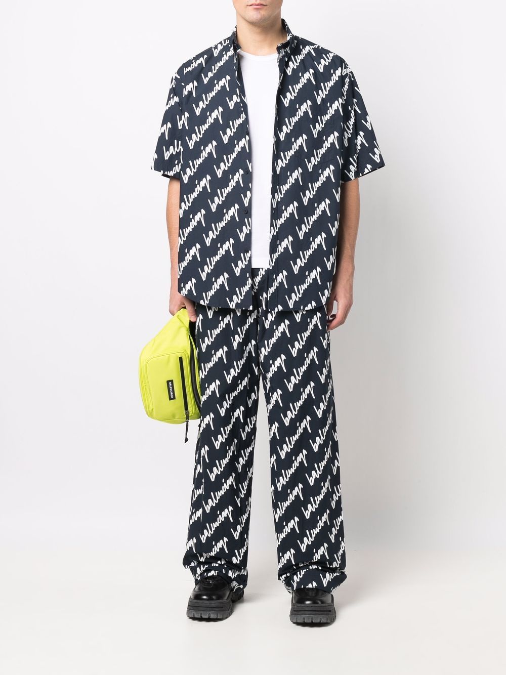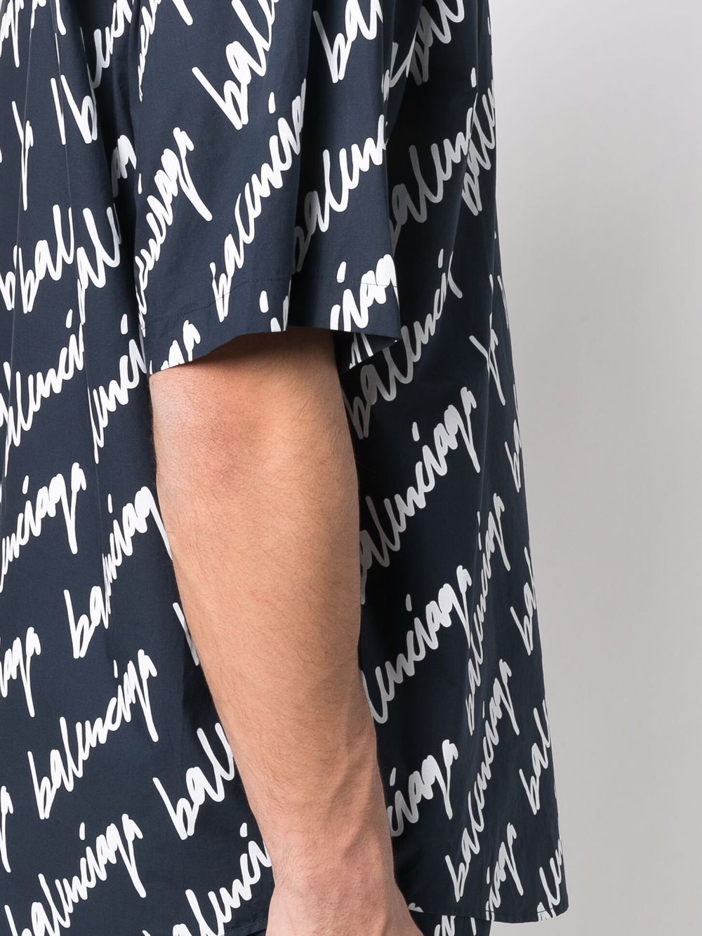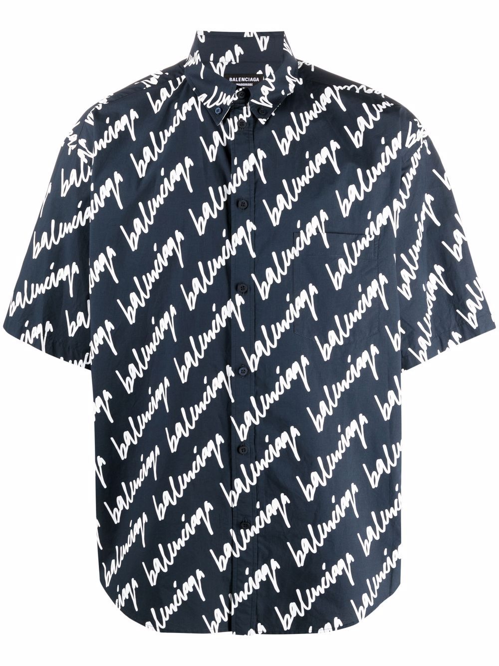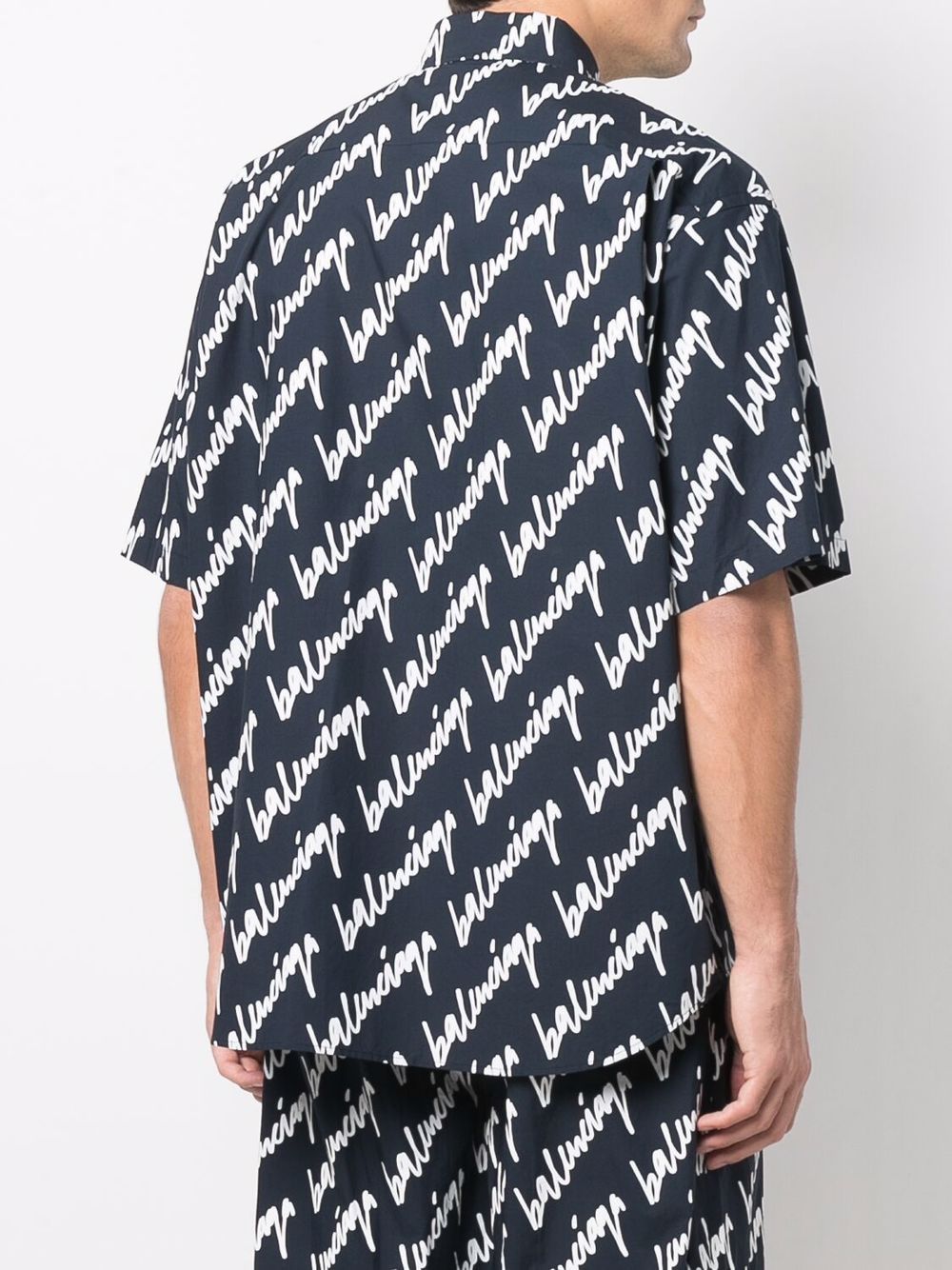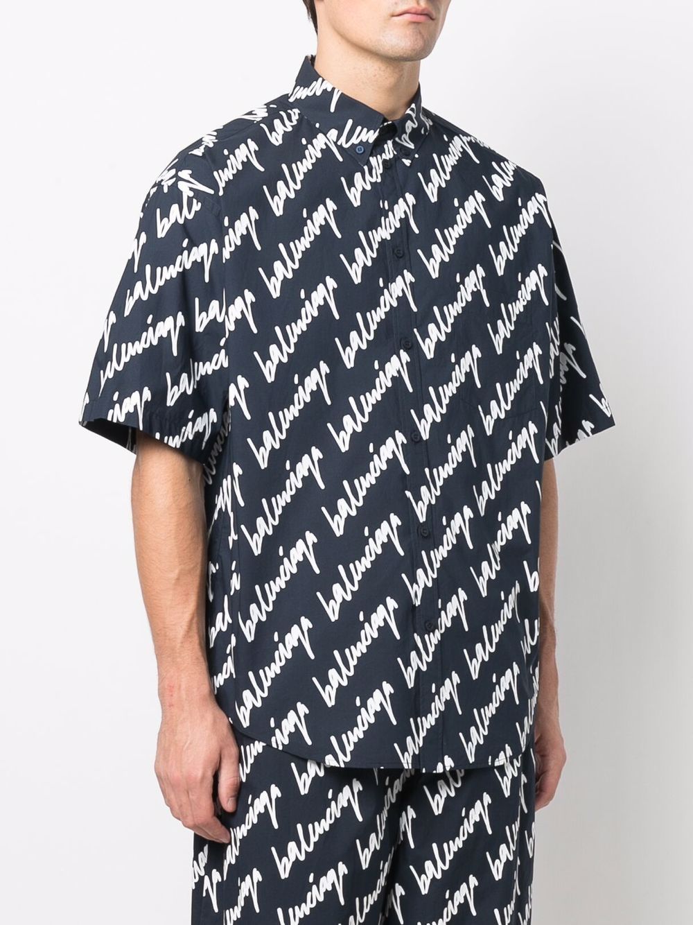 BALENCIAGA All Over Logo Print Shirt Navy/White