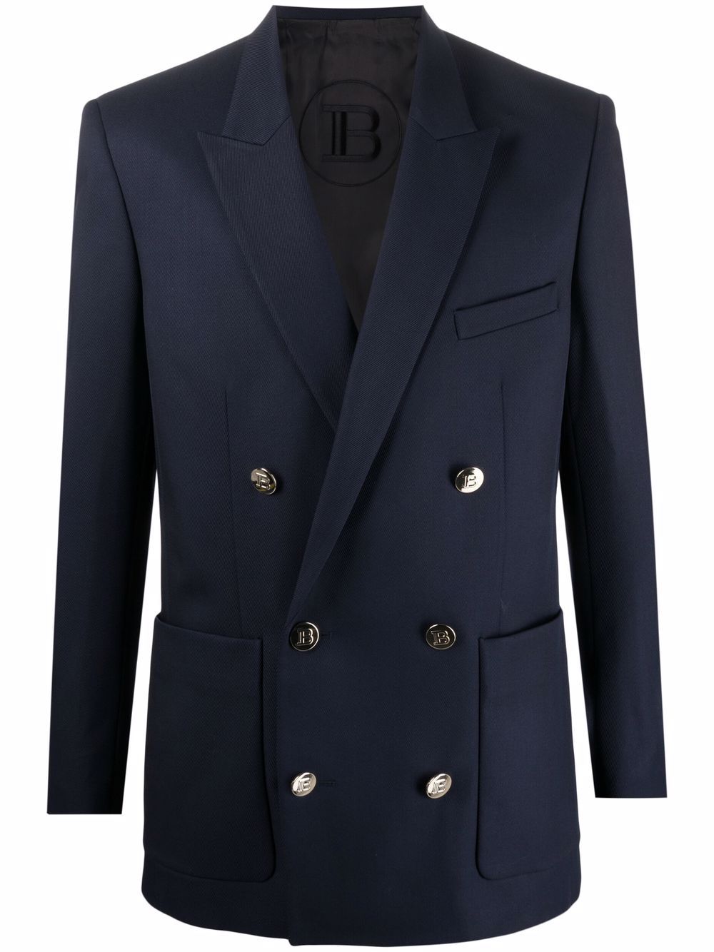 BALMAIN Collection Fit Double Breasted Blazer Navy