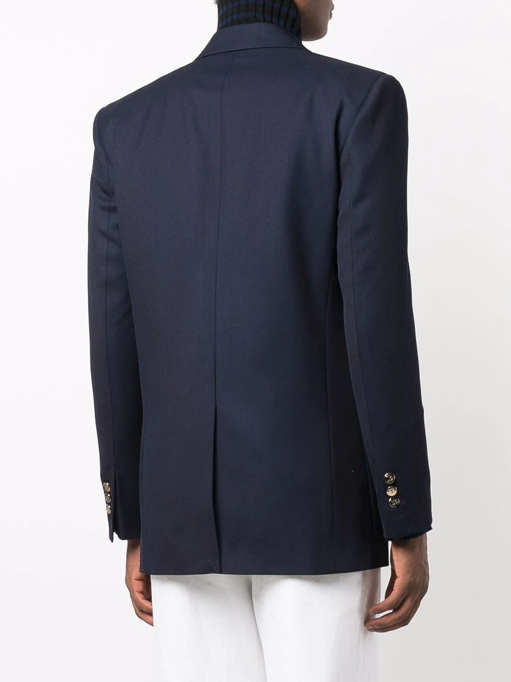 Crafted from gold-tone metal, Balmain's six buttons have become a key identifier for the brand. Adorning this marine-blue blazer, the woolen design promise comfort and style in equal measures.