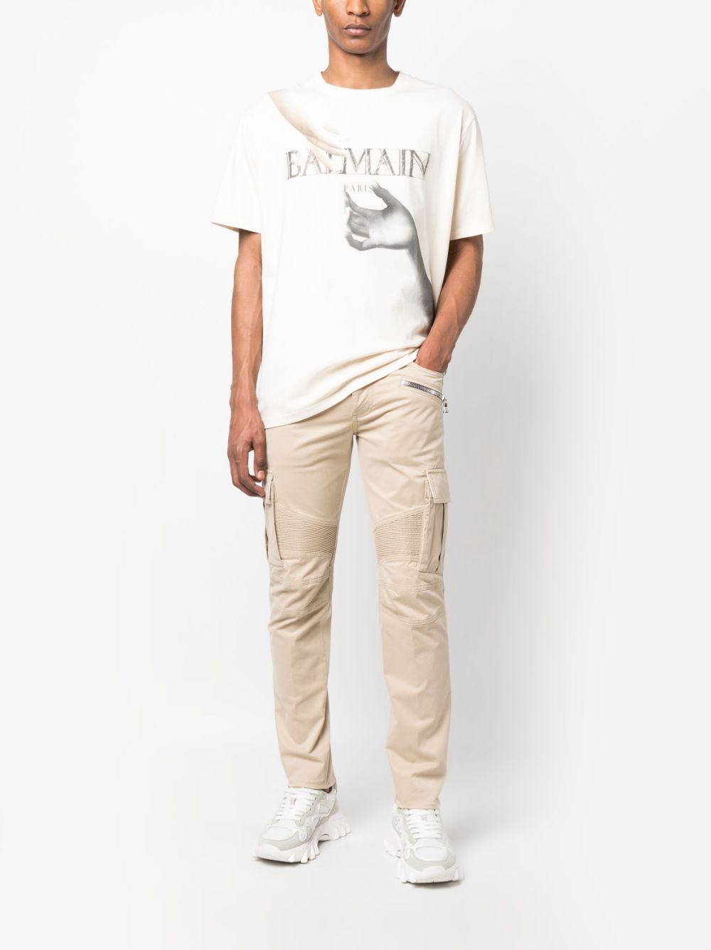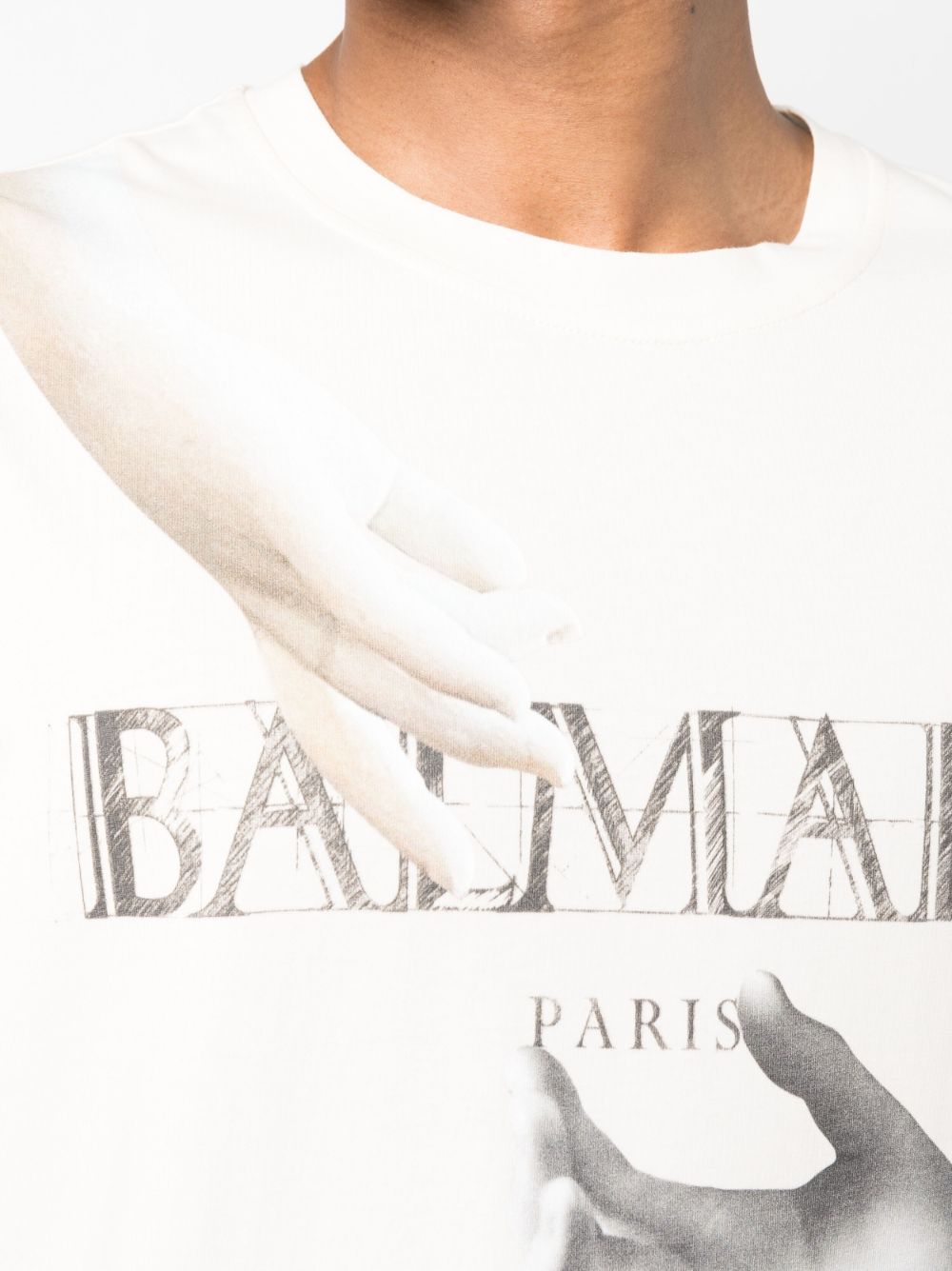 BALMAIN Loose Fit Statue Print SS T-Shirt White/Multi Brown