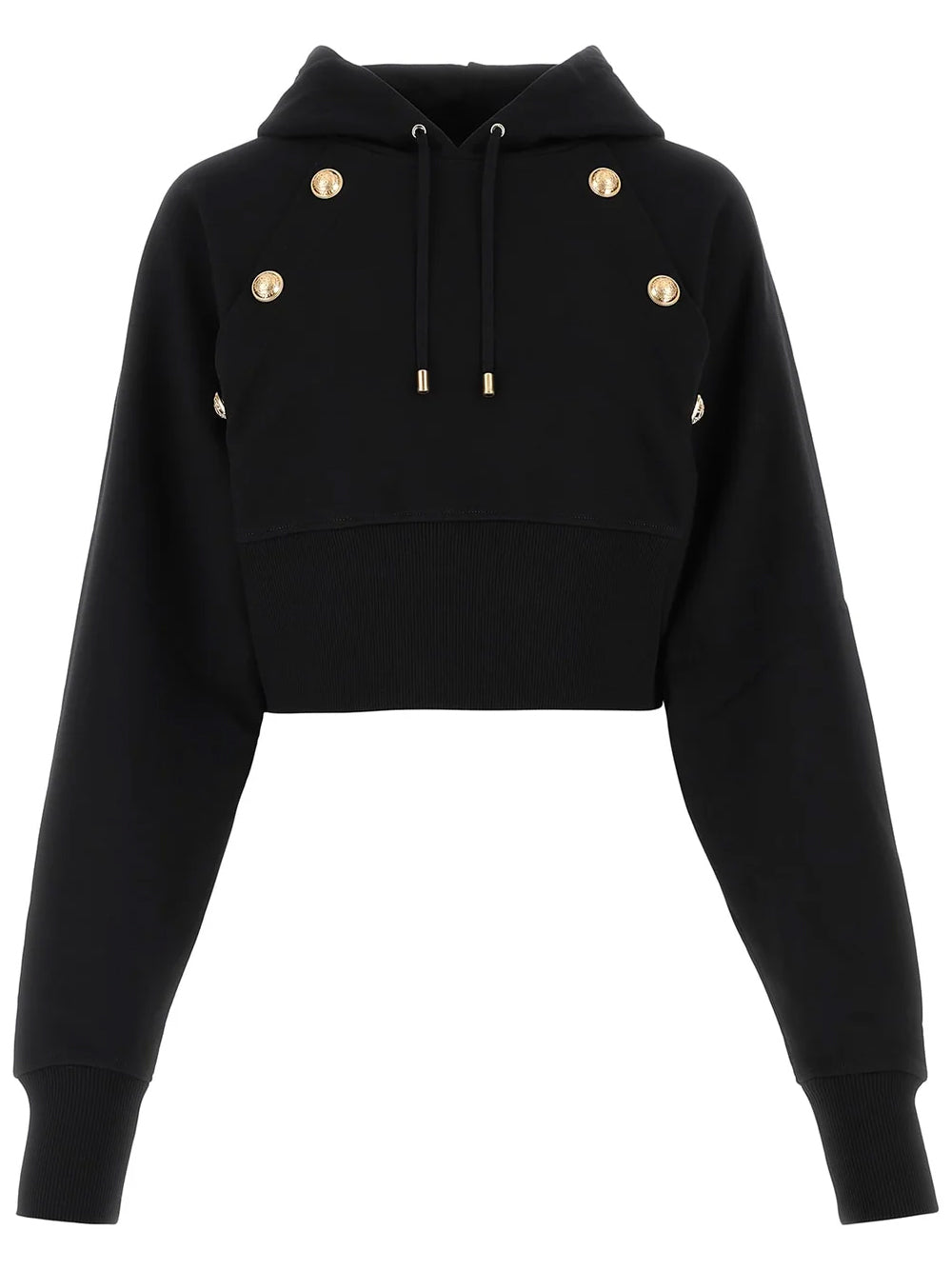 BALMAIN WOMEN Button-Detail Cropped Hoodie Black