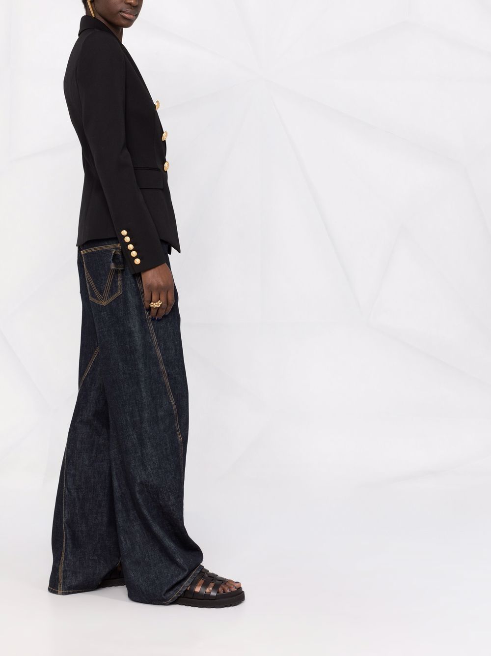 Keep things smart in a Balmain jacket. Setting the standard with gold-tone hardware, this black blazer has peak lapels and embossed buttons in a double-breasted arrangement.