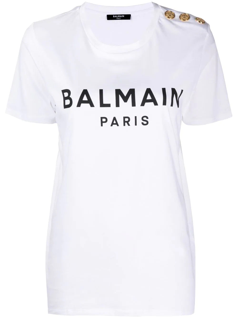 BALMAIN WOMEN Logo-print short-sleeve T-shirt White