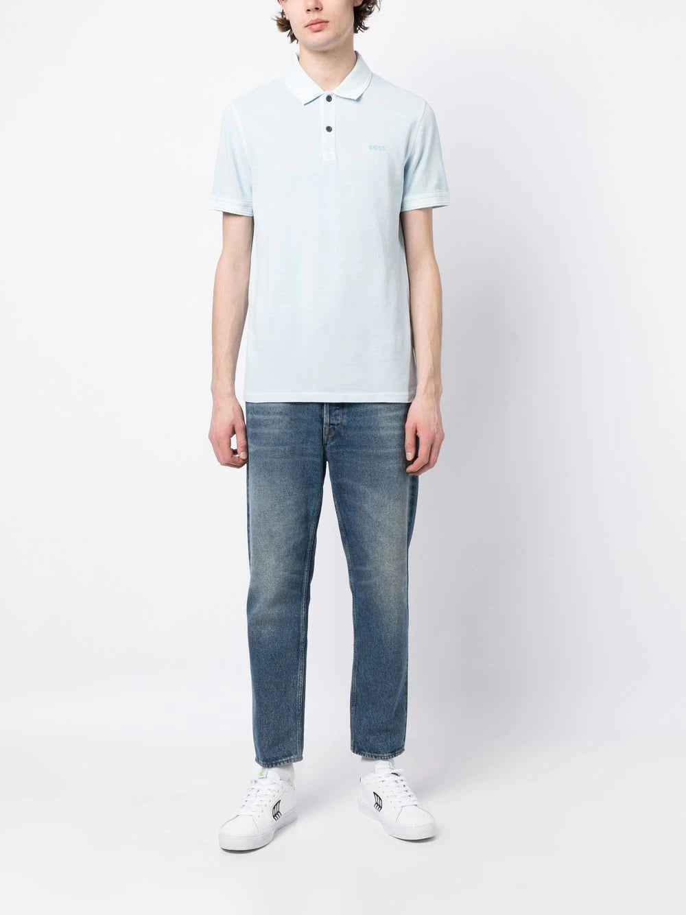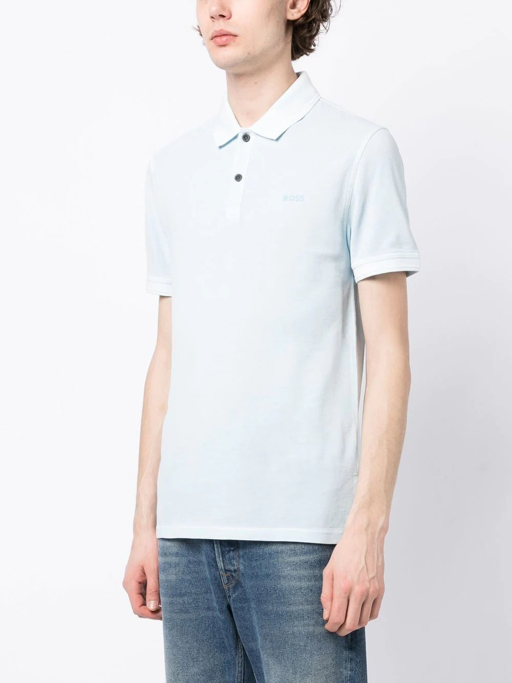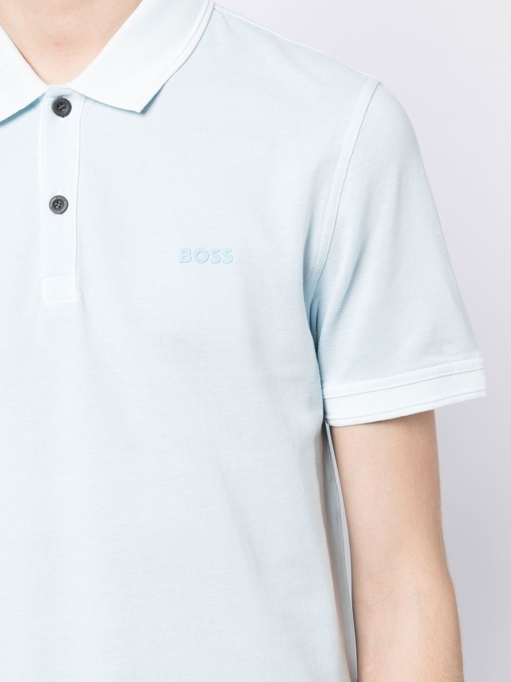 BOSS Logo-embossed Cotton Polo Shirt Open Blue