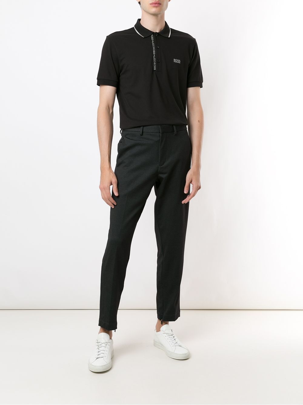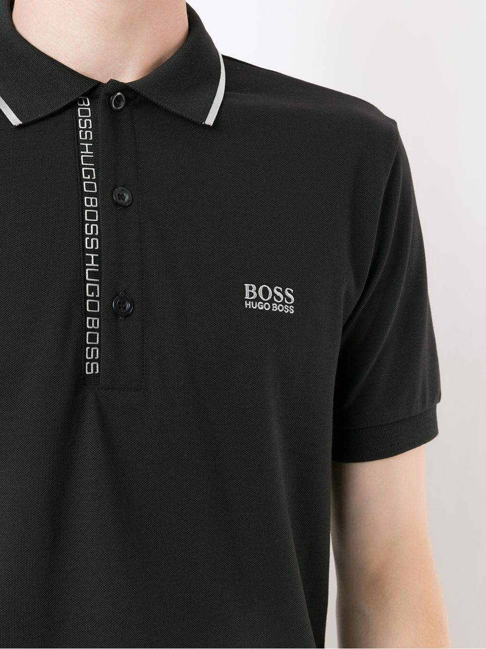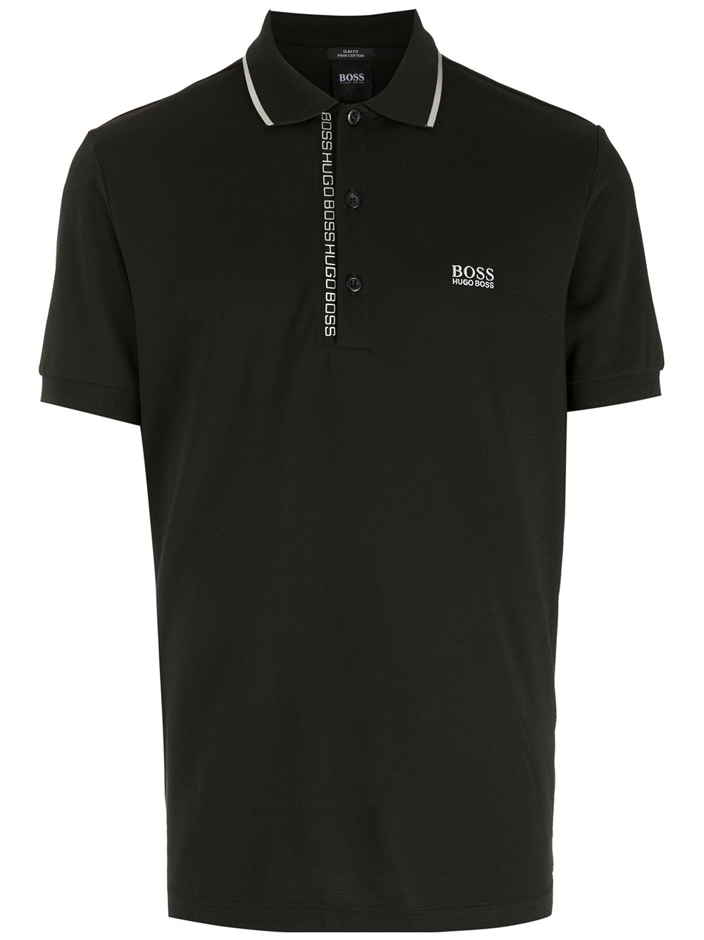 BOSS Logo-embroidered short-sleeve polo shirt Black