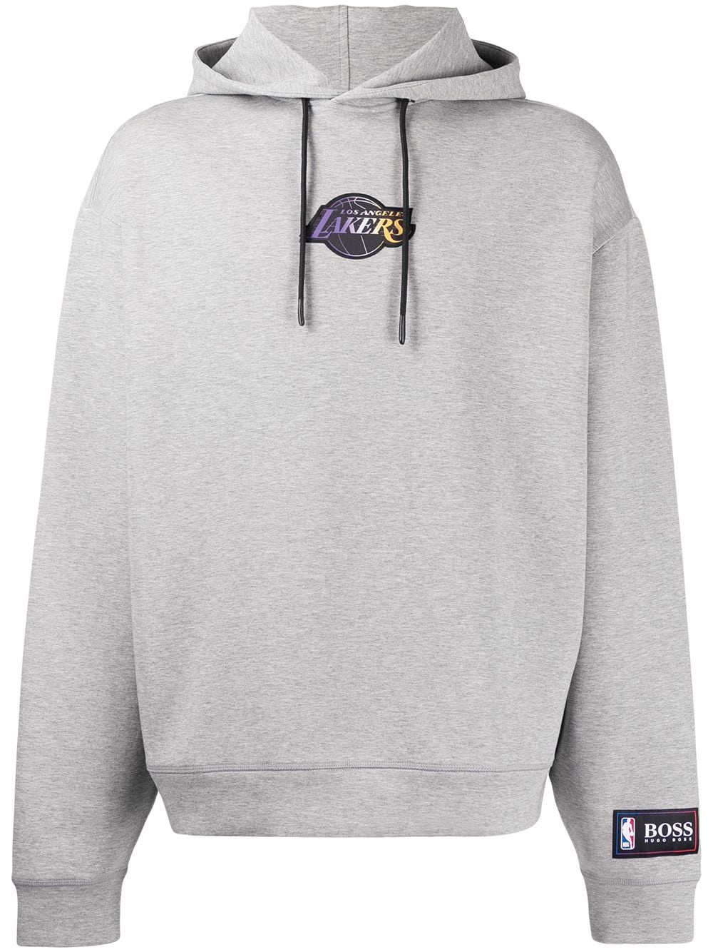 BOSS X NBA Lakers logo-print pullover hoodie Grey