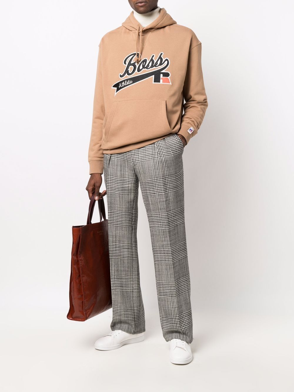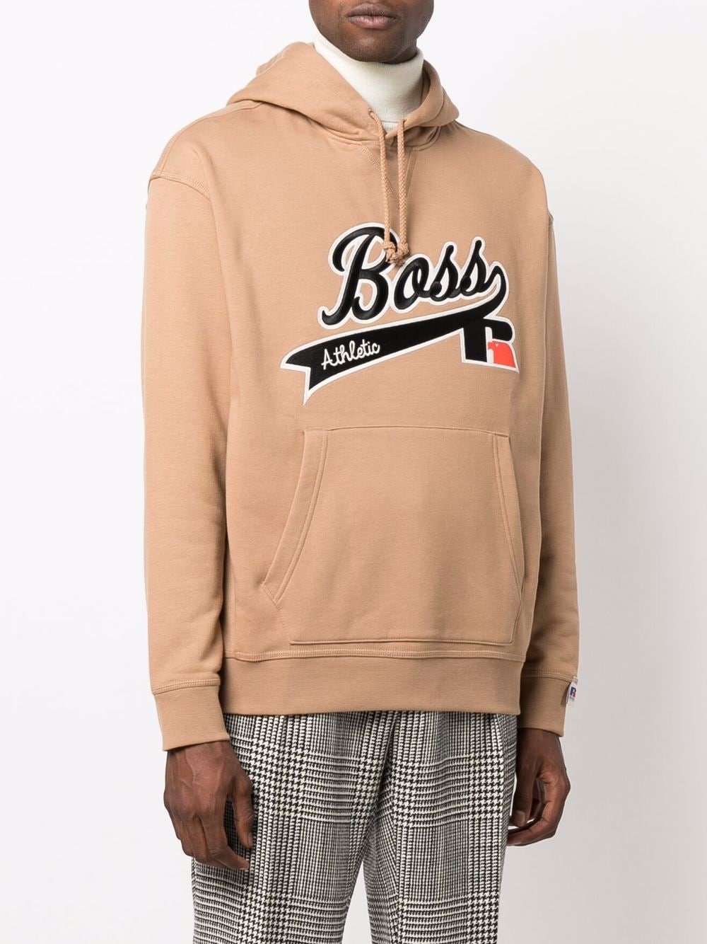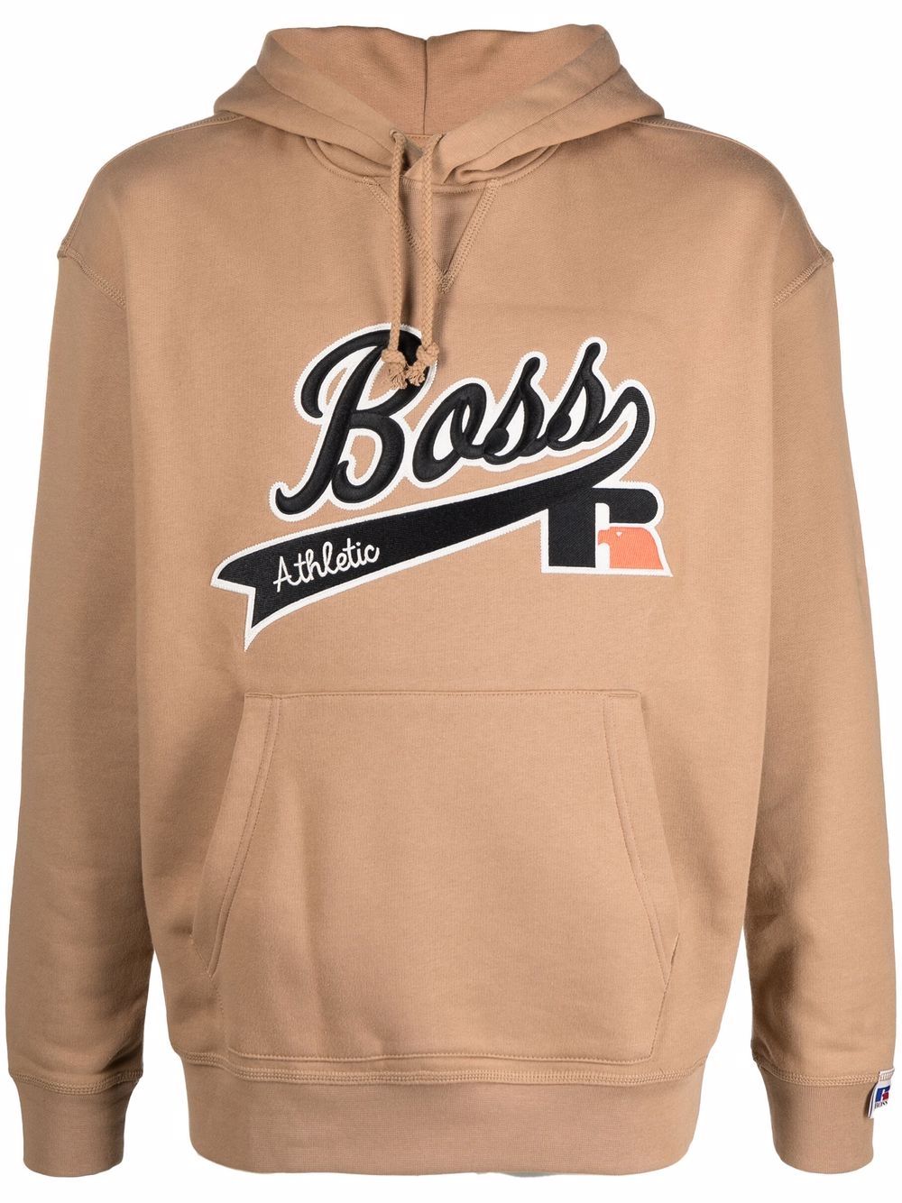 BOSS X RUSSELL ATHLETIC Logo-patch long-sleeved hoodie Brown