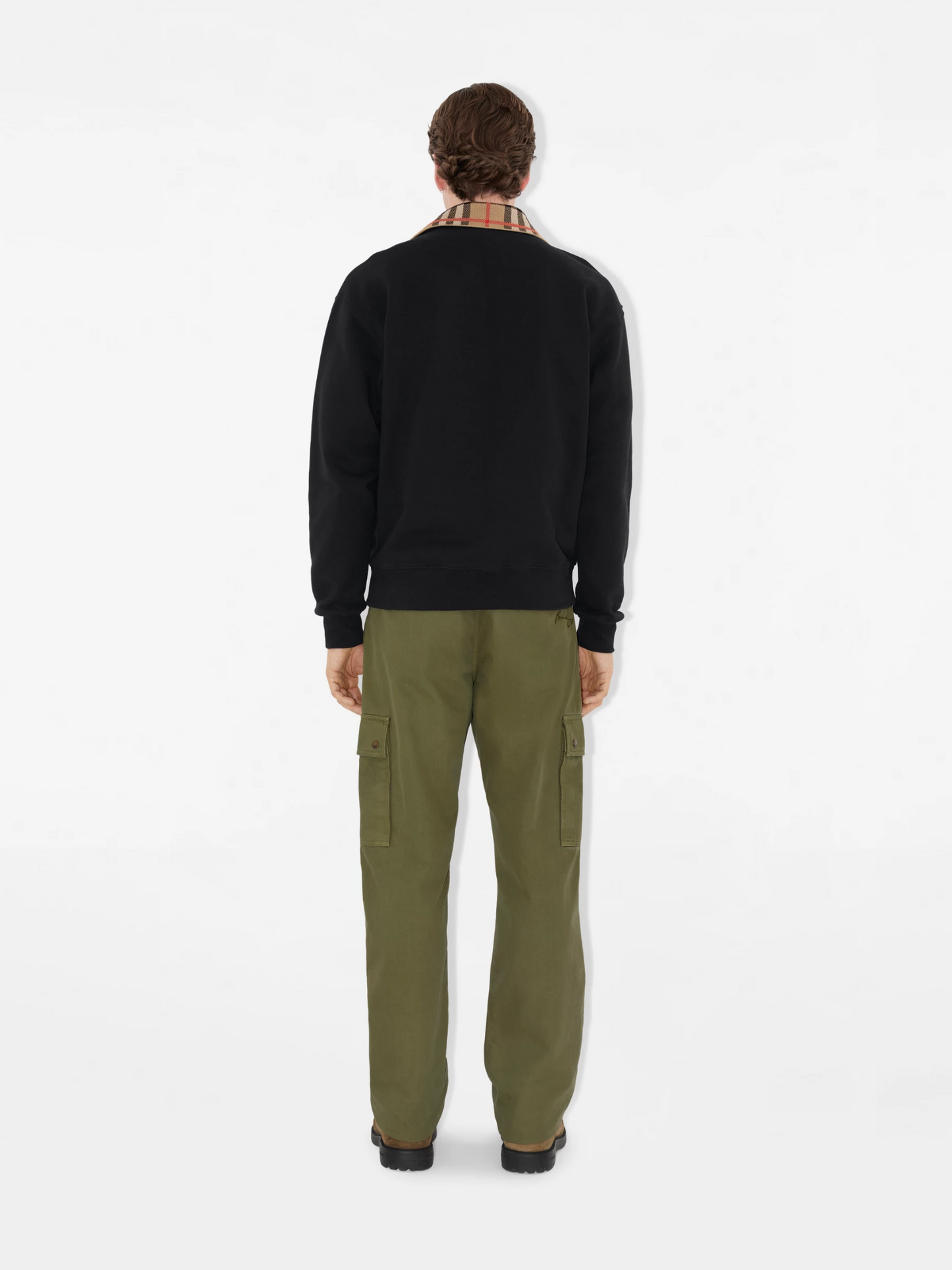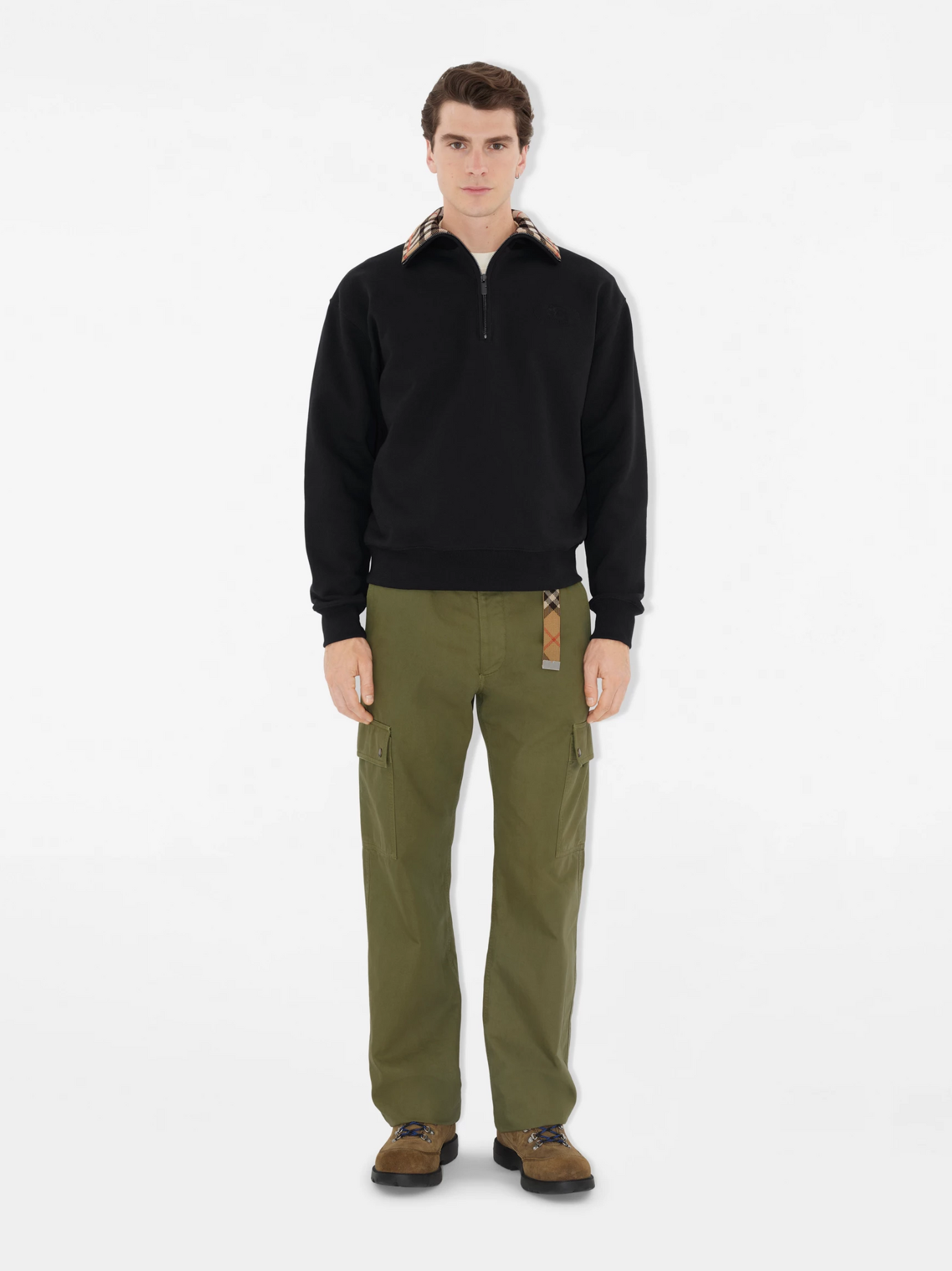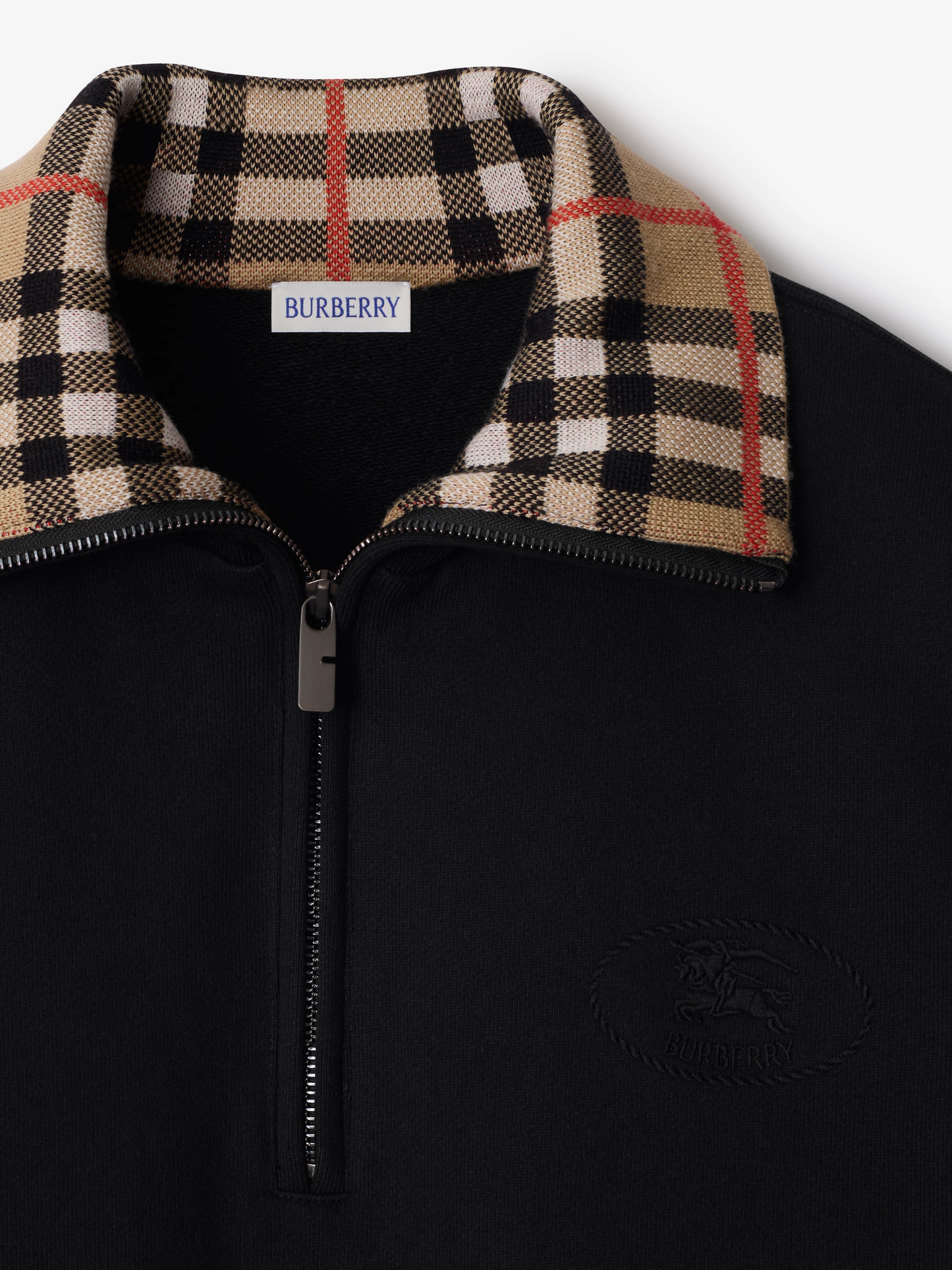 BURBERRY Check Collar Cotton Half-zip Sweatshirt Black
