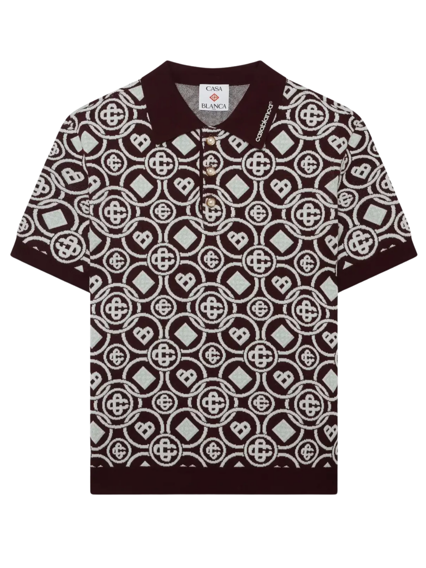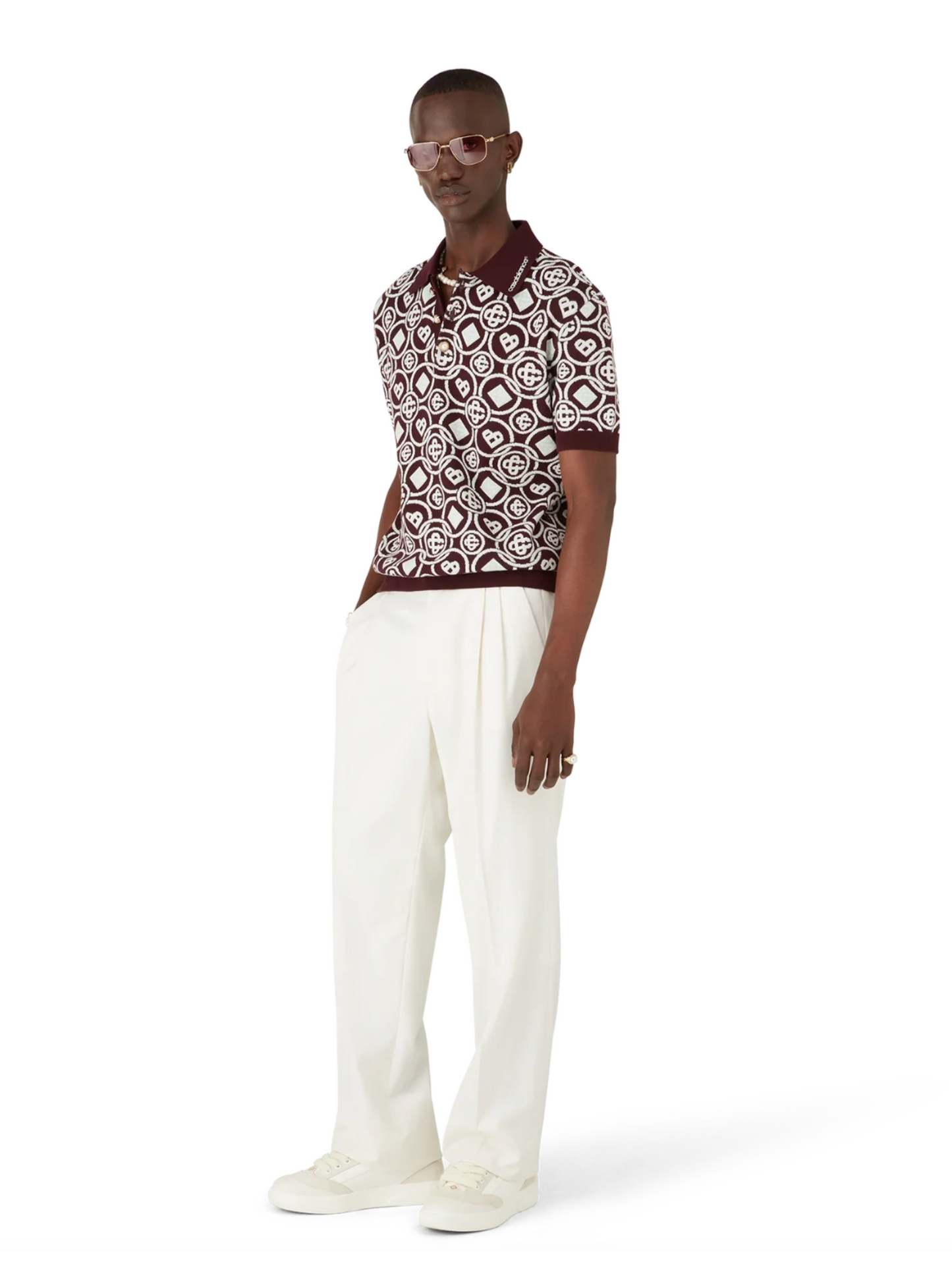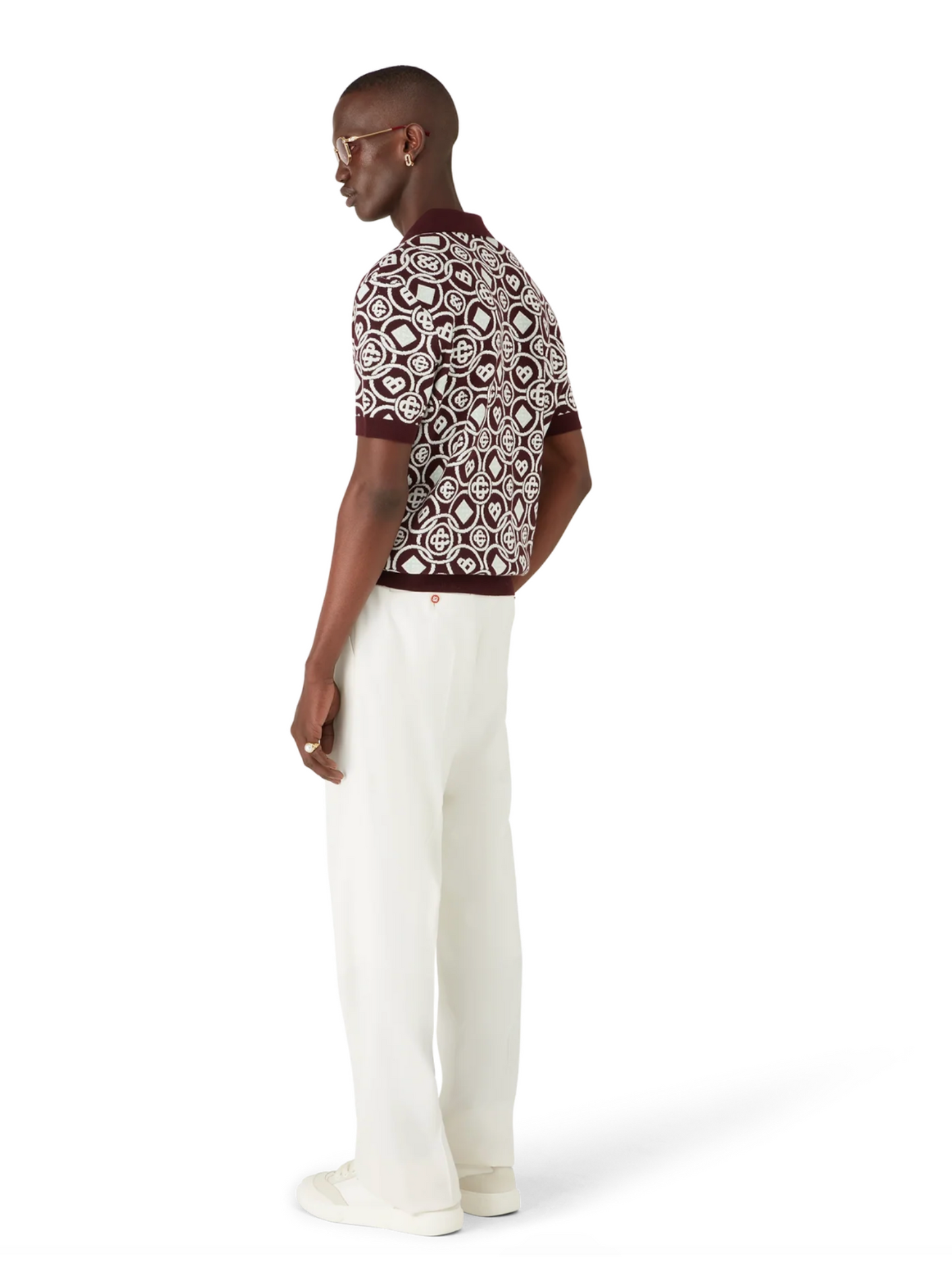 CASABLANCA Monogram Cotton Knit Polo Shirt Burgundy