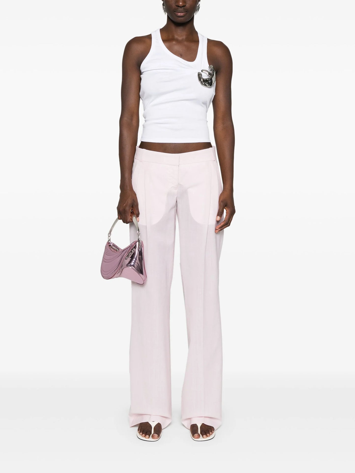 - silver-tone brooch detail