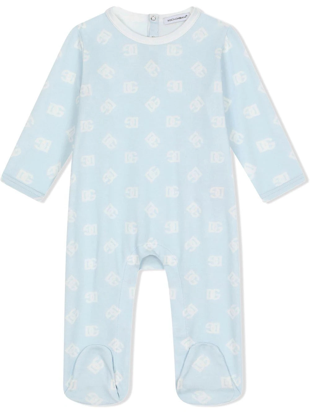 DOLCE & GABBANA BABY DG Logo-Print Babygrow Set Blue