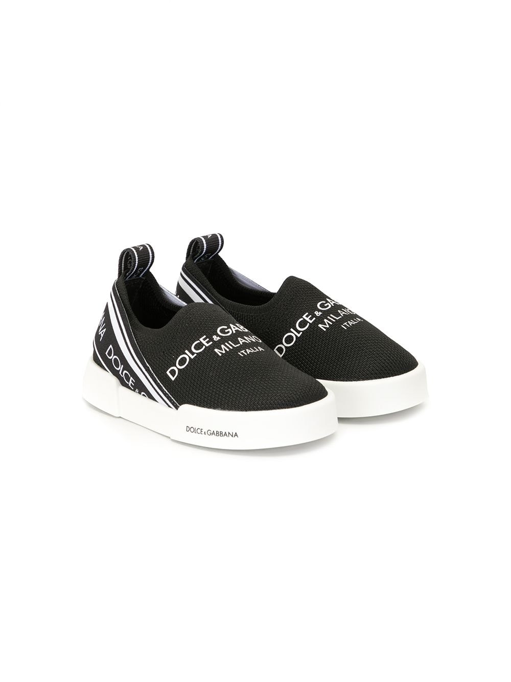 DOLCE & GABBANA BABY Logo print slip-on sneakers Black