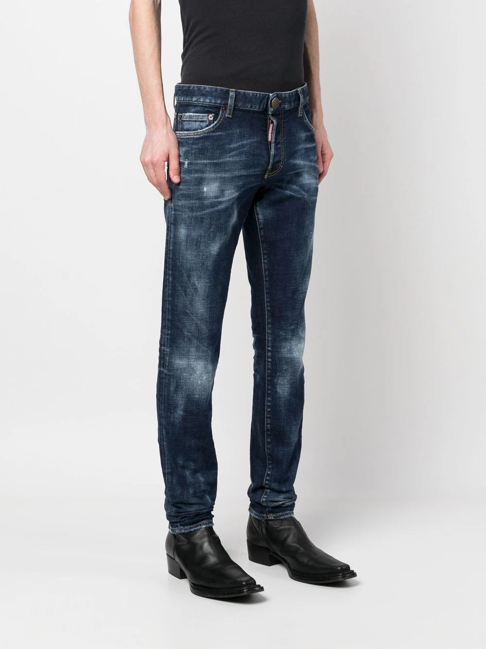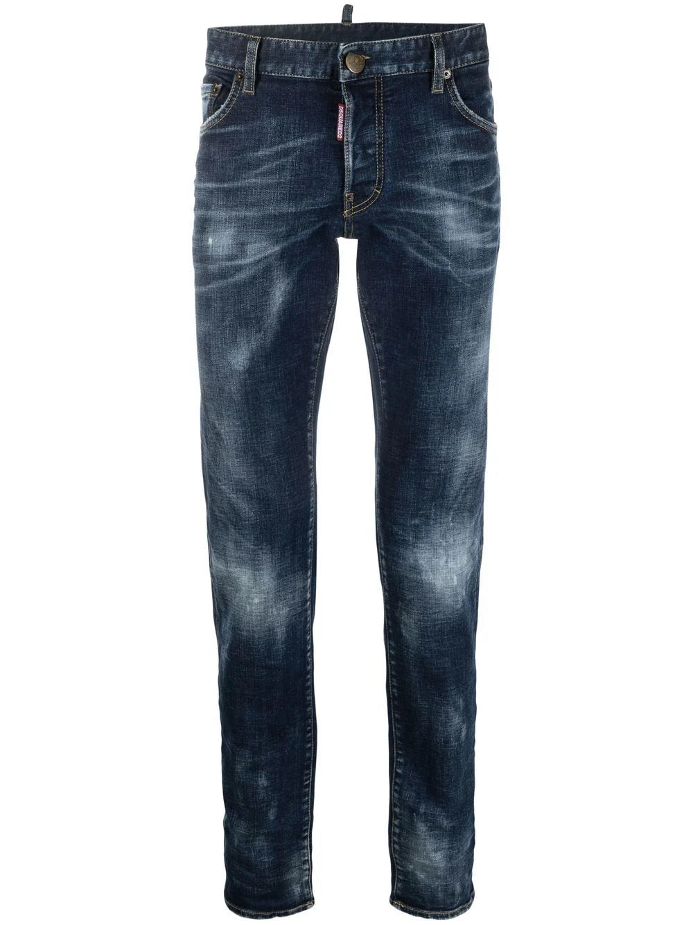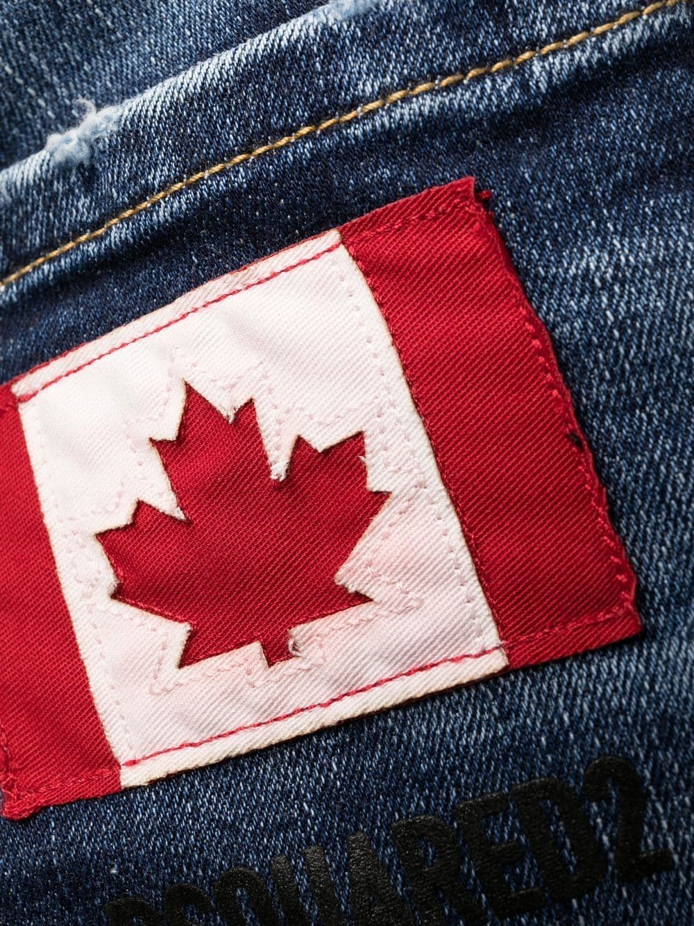 Punctuated with distressed accents throughout for a worn-in look, these indigo-hue jeans from Dsquared2 are cut for a slim cut and decorated with a flag patch at the rear - a nod to the brand's Canadian roots.