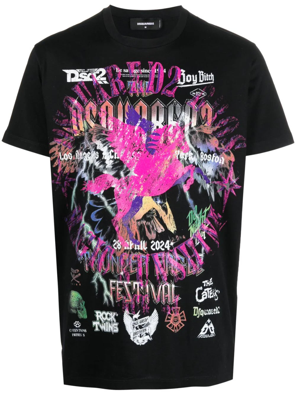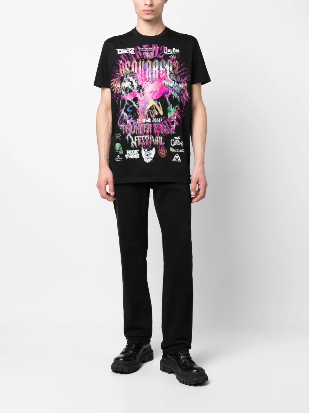 graphic-print cotton T-shirt from DSQUARED2 featuring black, cotton, graphic print to the front, crew neck, short sleeves and straight hem.