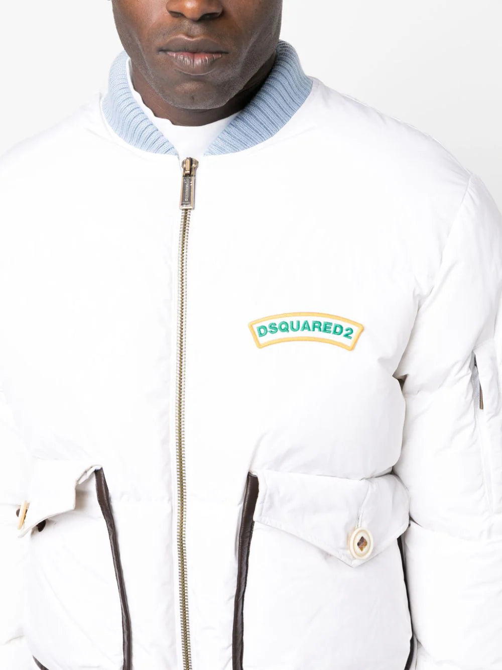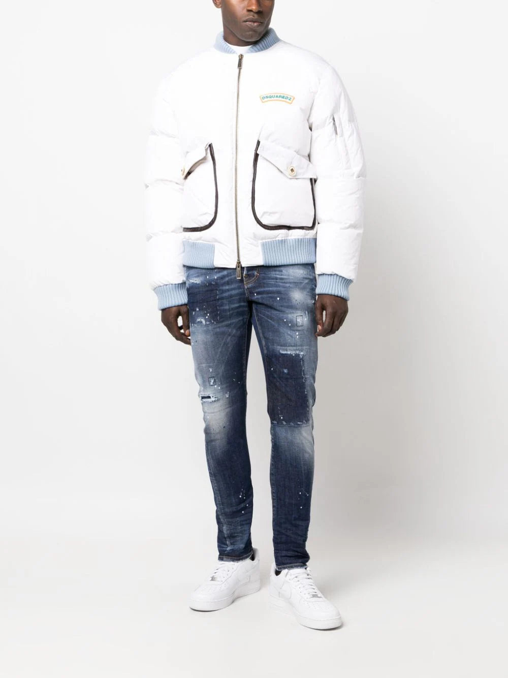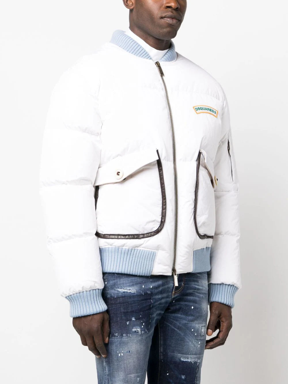 DSQUARED2 Mother Fluff Puff Slim Fit Bomber Sports Jacket White Blue