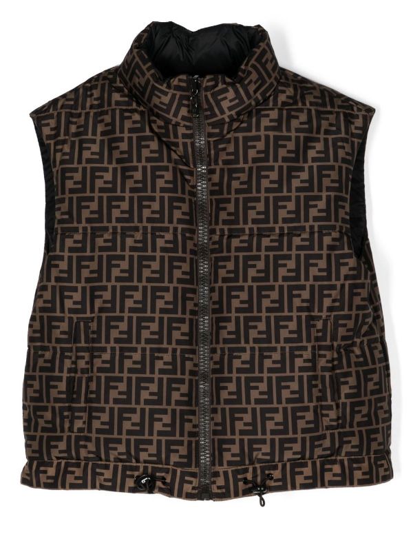 FENDI KIDS FF Monogram-Print Reversible Gilet Black/Brown