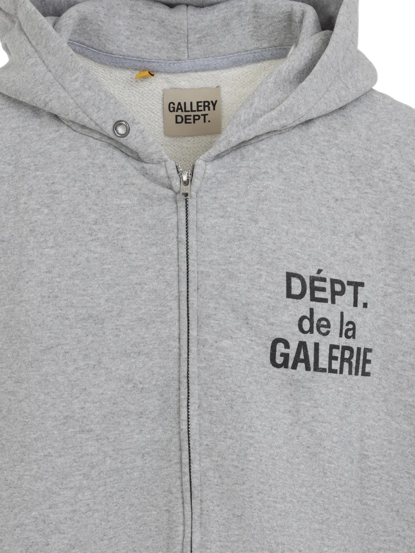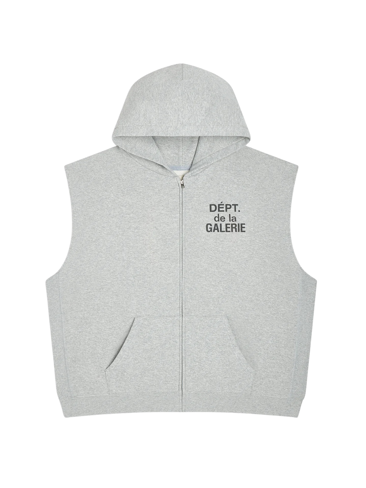 GALLERY DEPT. 90'S Full Zip Cut Off Hoodie Heather Grey