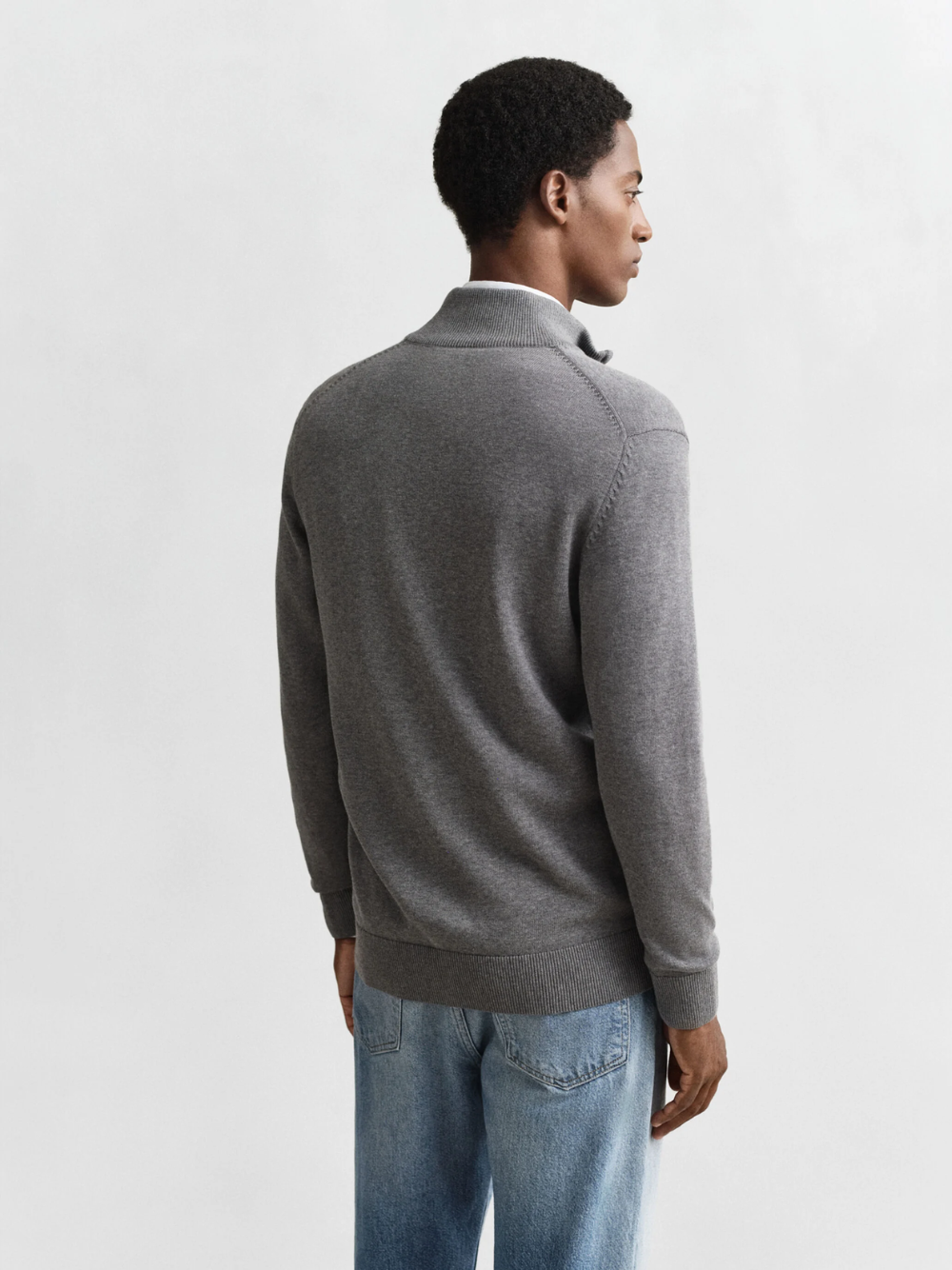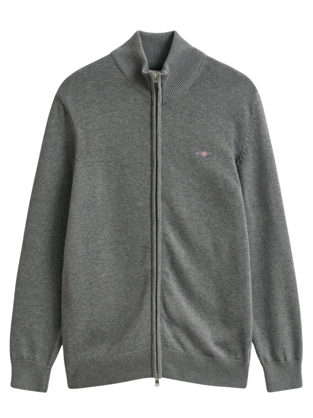 GANT Casual Cotton Zip Cardigan Dark Grey Melange