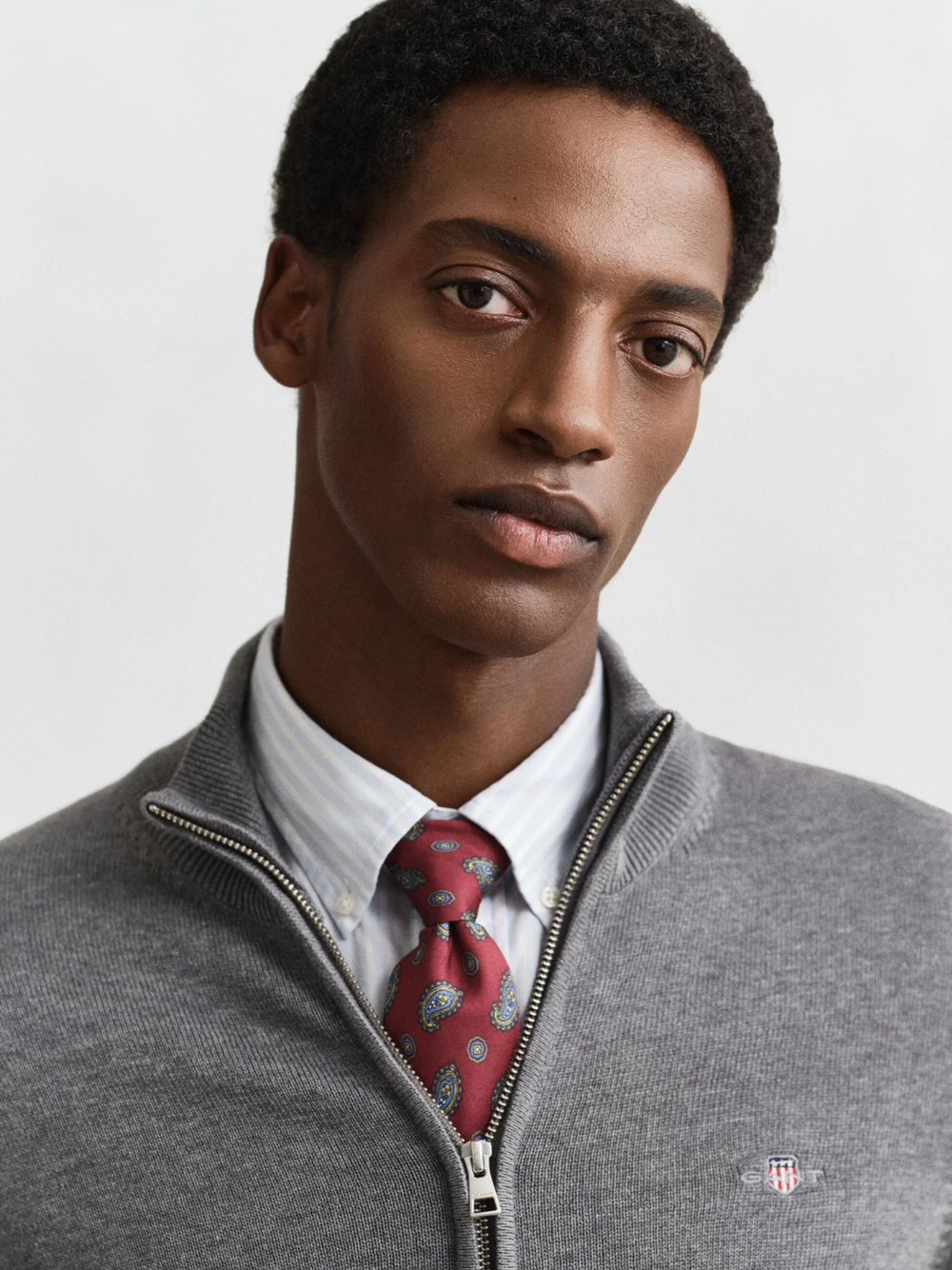Crafted in medium-weight cotton and cut in a regular fit, this full-zip cardigan features a GANT shield graphic embroidered at the chest.