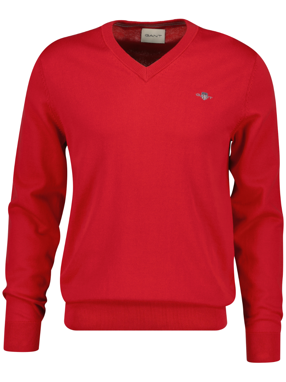 Crafted in cotton and cut in a regular fit, this V-neck sweater features a GANT shield graphic embroidered at the chest.