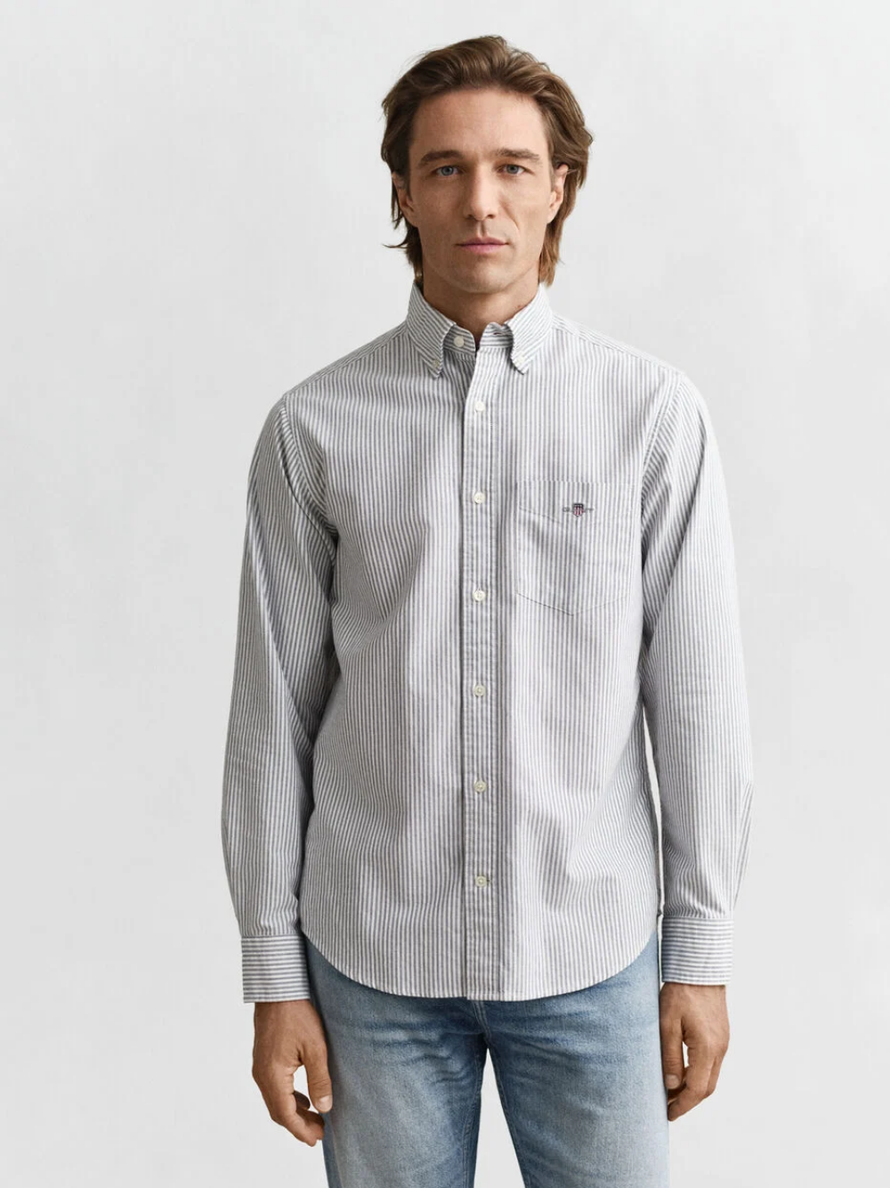 Versatile, foundational and smart-casual appropriate, the Classic Oxford Shirt features our iconic Archive Shield embroidery. Crafted from durable cotton with an all-over banker striped pattern, this design is cut for a regular fit and features a button-down collar, a curved hem, adjustable cuffs and a box pleat with our signature locker loop at the back.
