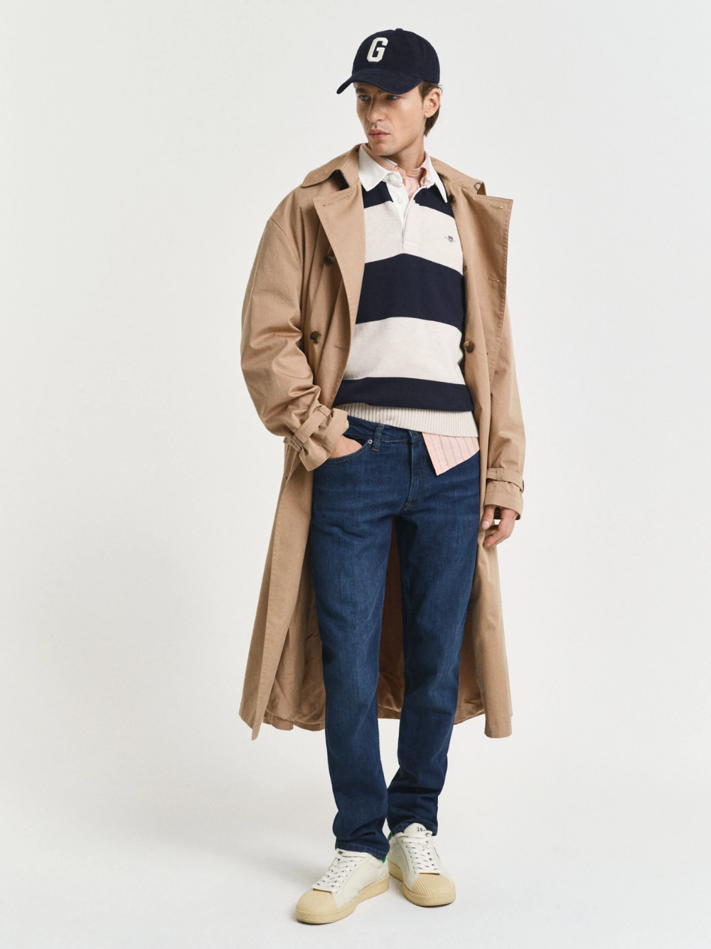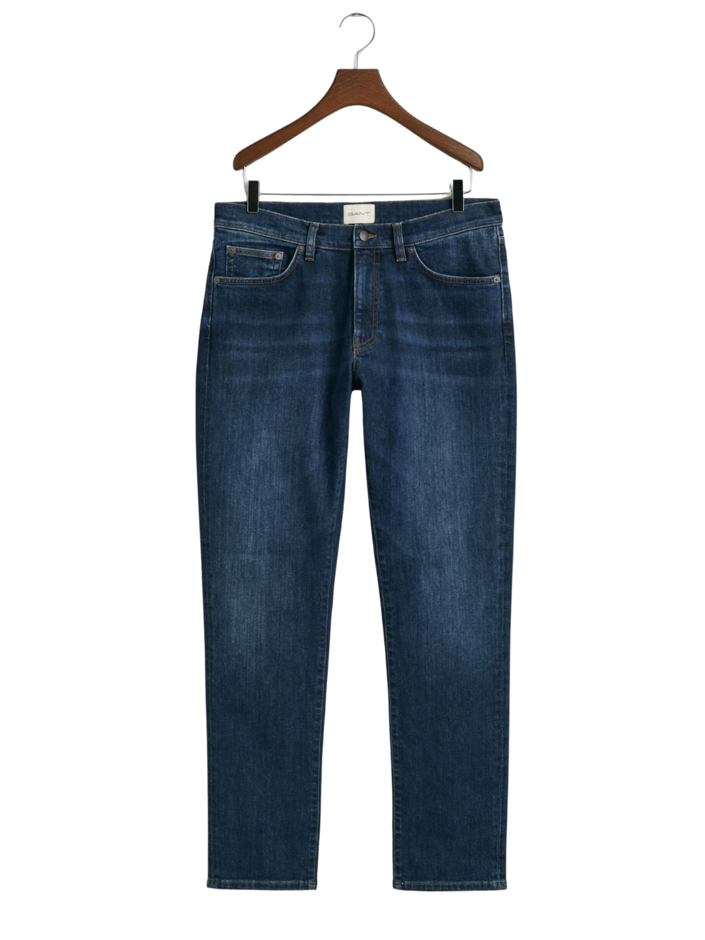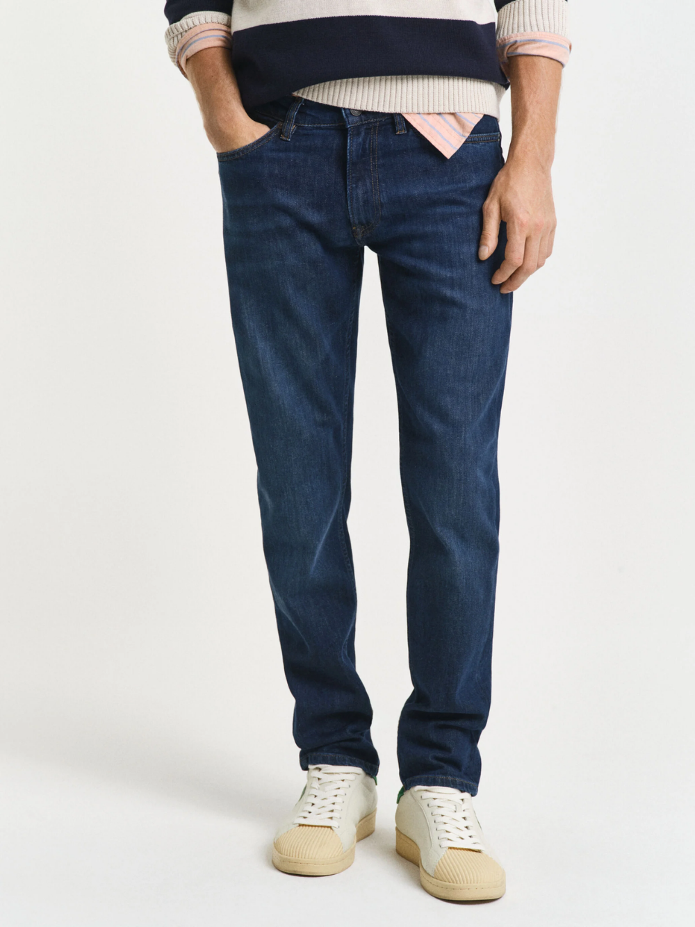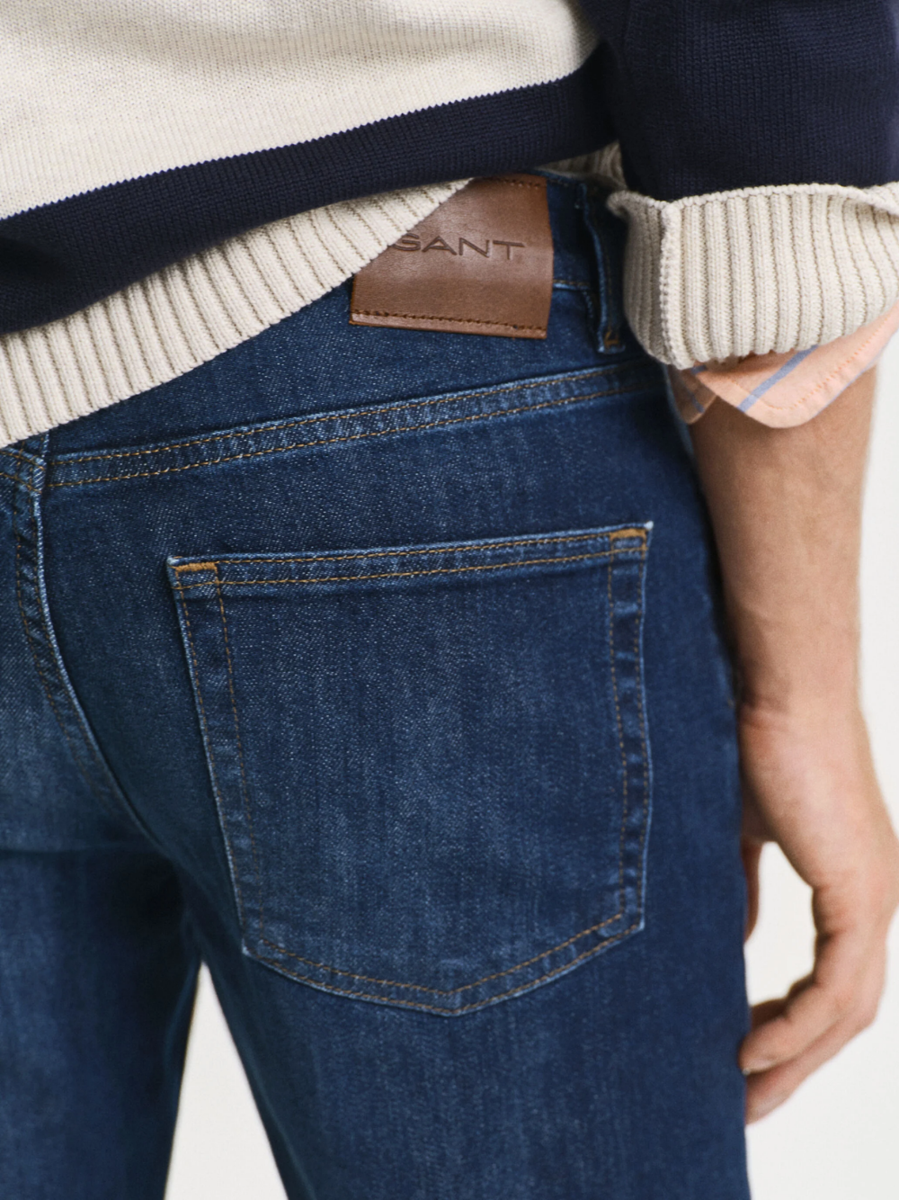 Regular price Dhs. 385.00 AEDCrafted in a cotton blend with a hint of stretch, these mid-rise jeans are cut in a slim fit for a contemporary style. Pre-washed for a worn-in feel, they feature branded shank button and rivets, a zip fly and a leather logo patch at the back waistband.