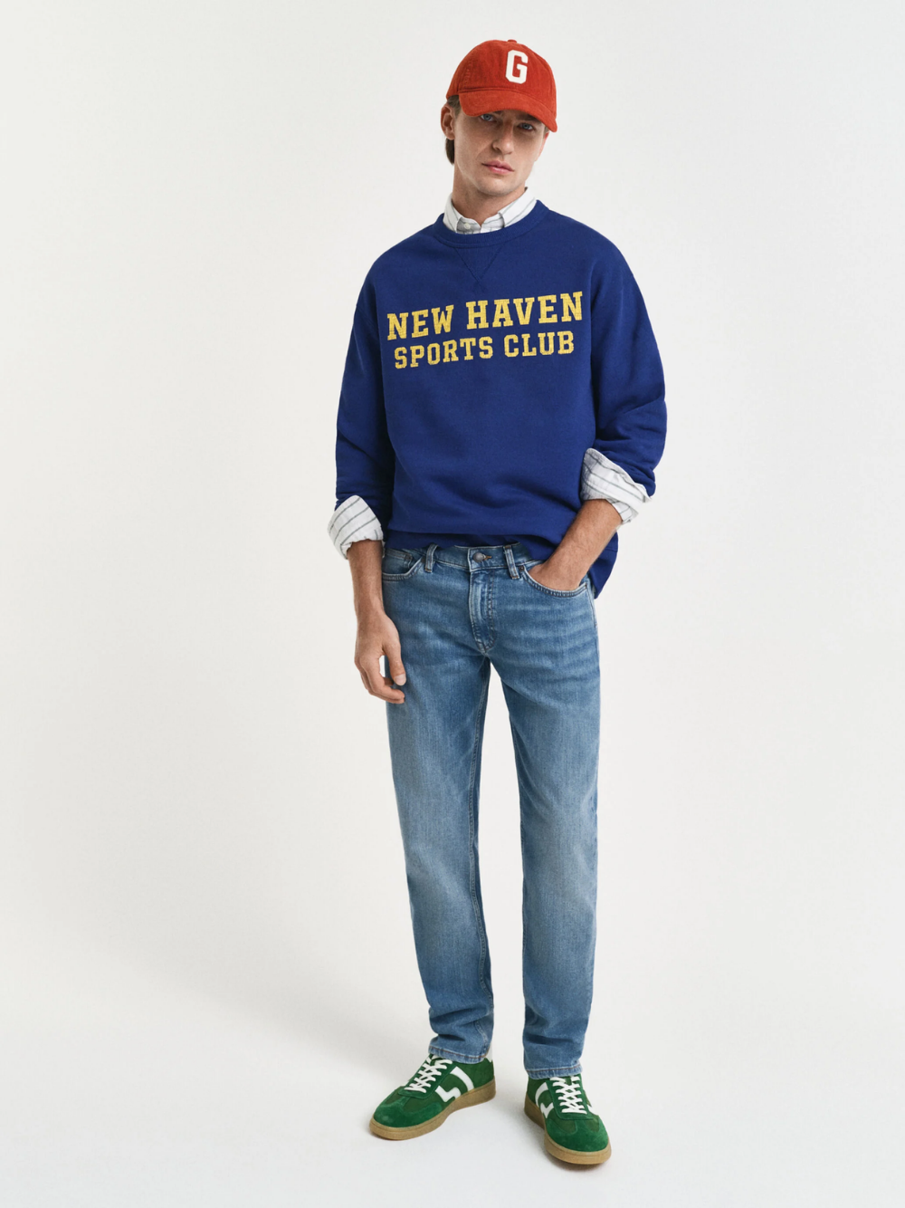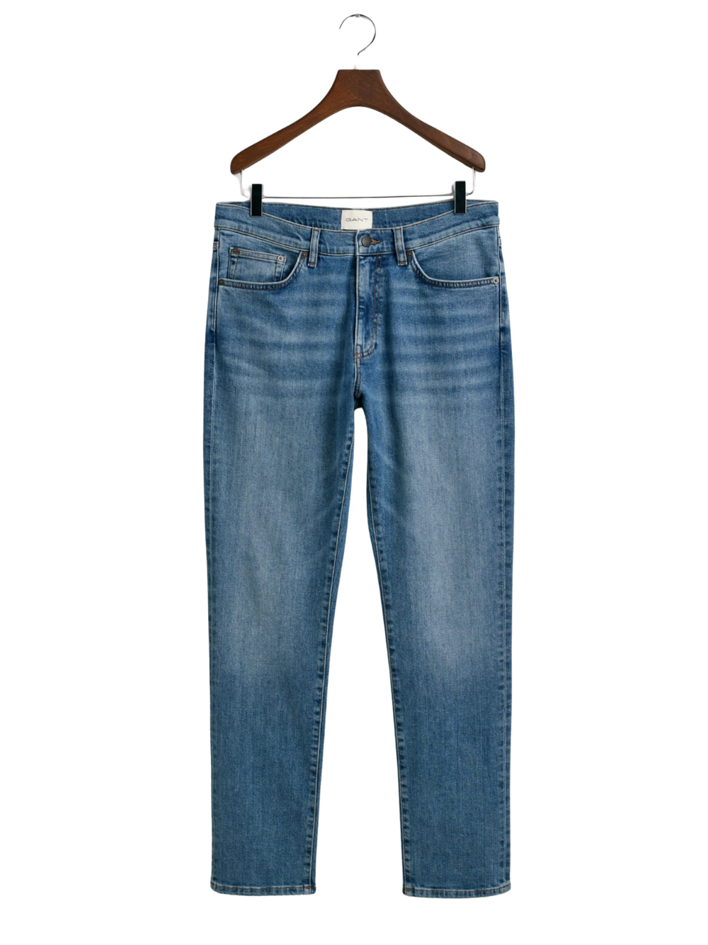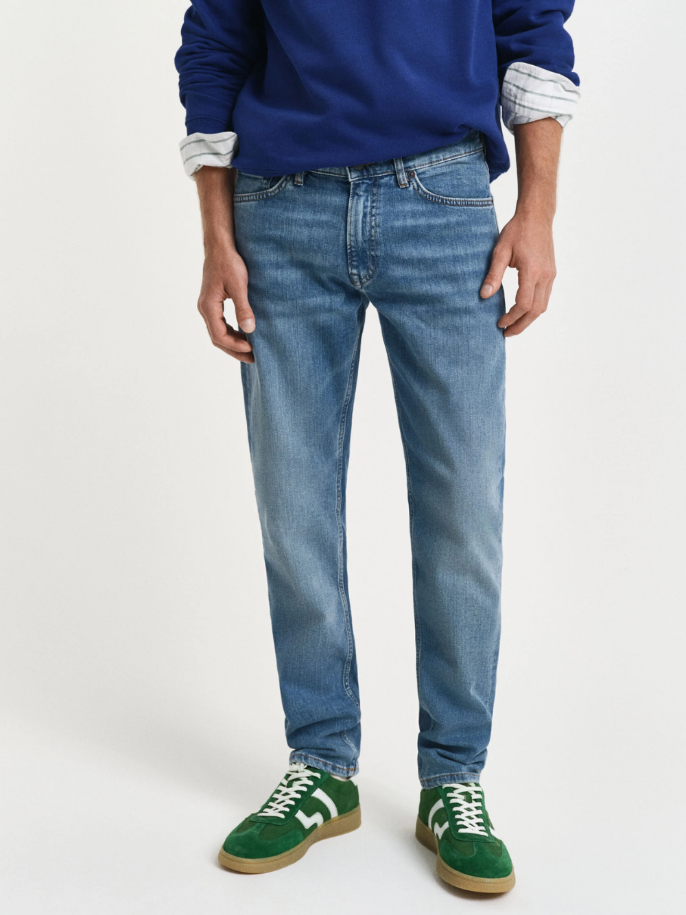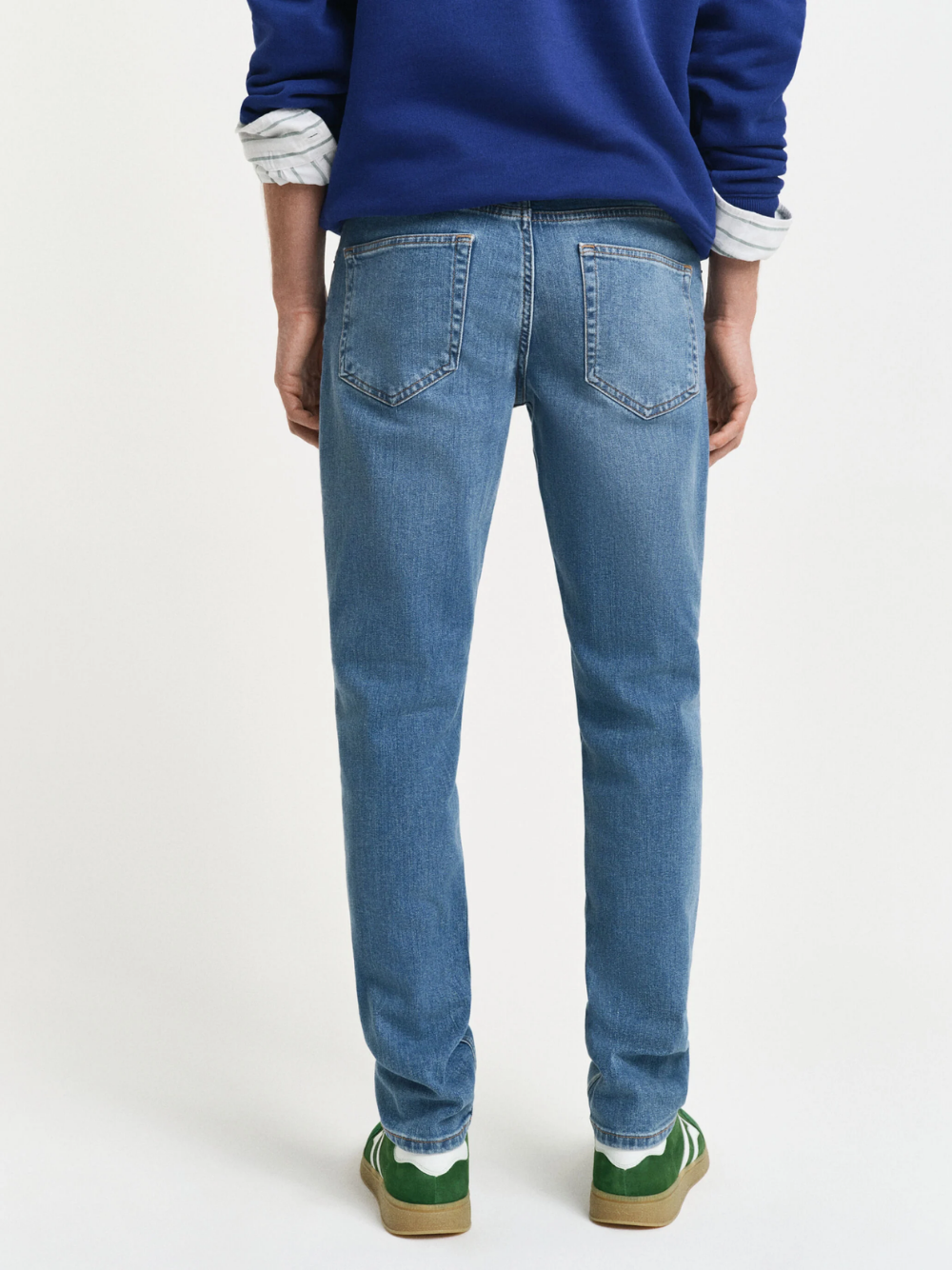 Regular price Dhs. 385.00 AEDCrafted in a cotton blend with a hint of stretch, these mid-rise jeans are cut in a slim fit for a contemporary style. Pre-washed for a worn-in feel, they feature branded shank button and rivets, a zip fly and a leather logo patch at the back waistband.