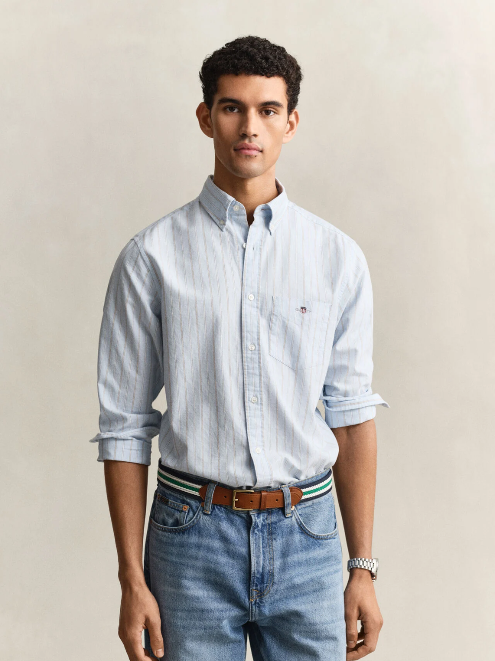 Regular price Dhs. 355.00 AEDVersatile, foundational and smart-casual appropriate, the Classic Oxford Shirt features our iconic Archive Shield embroidery. Crafted from durable cotton with yarn-dyed stripes, this shirt is cut for a regular fit and features a button-down collar, curved hem, adjustable cuffs and a box pleat with our signature locker loop at the back.