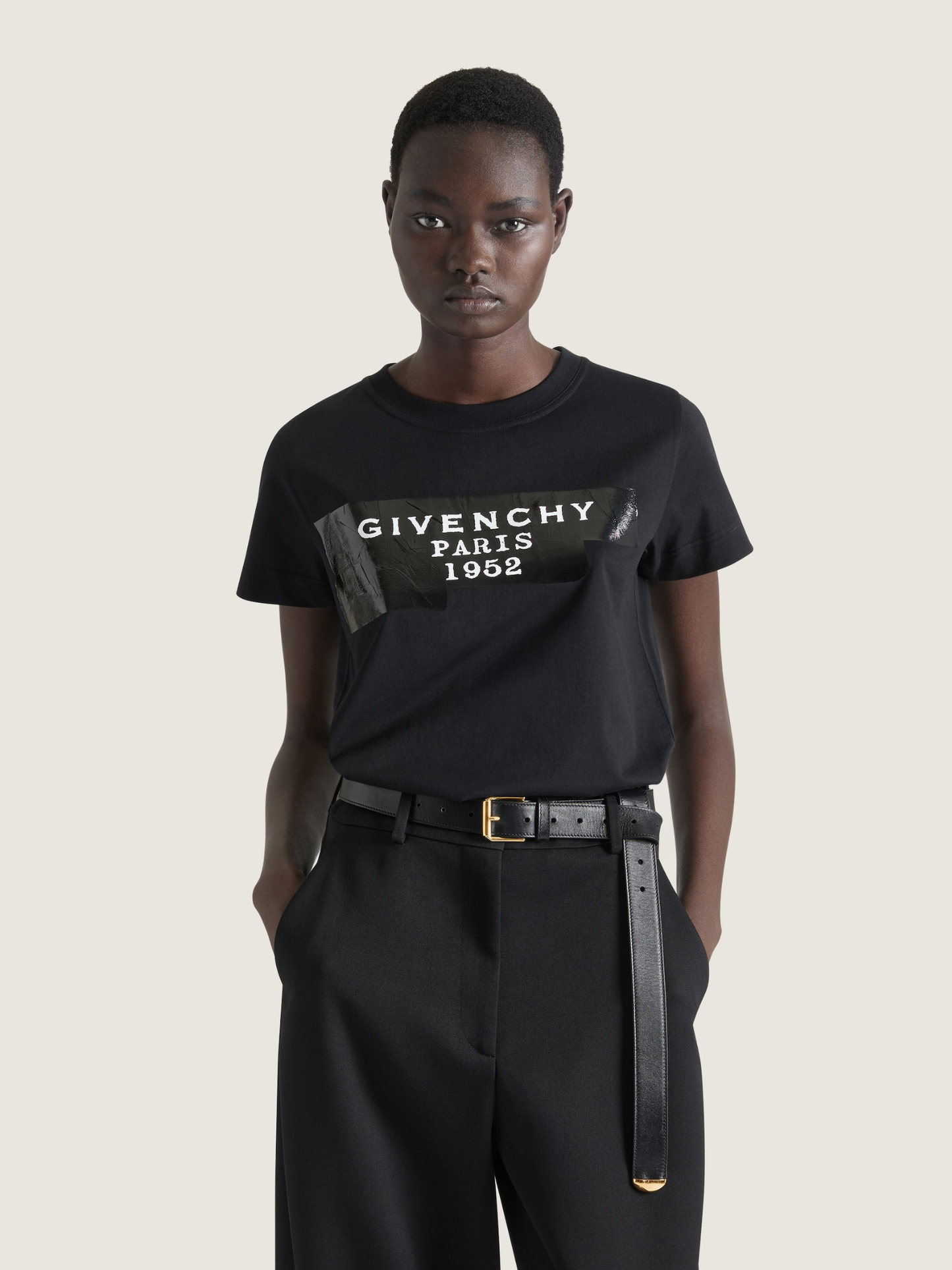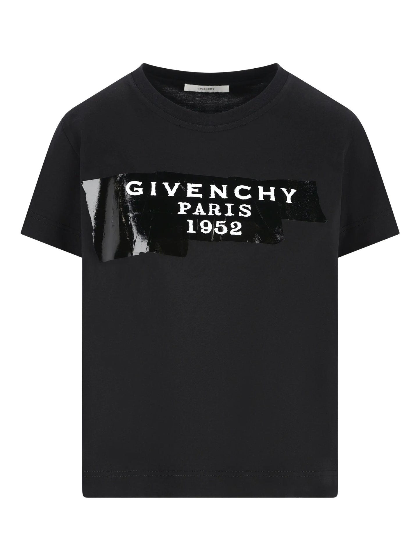 GIVENCHY WOMEN 1952 Tape-print Cotton T-shirt Black