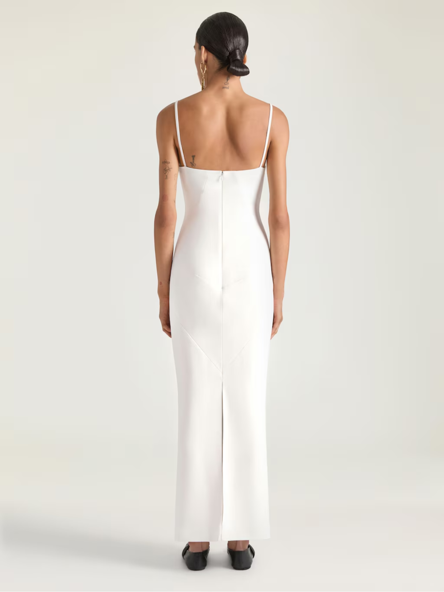 - Invisible zipped closure on the back.