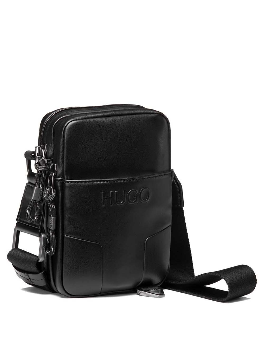 A reporter bag by HUGO, detailed at the base with a signature hardware trim in a brushed-gunmetal effect. Constructed in faux leather, this modern bag features two zipped compartments with lace pullers and branded trims. The strap can be adjusted for multiway wear, while the front pocket provides fast access to essentials and carries an embossed logo.
