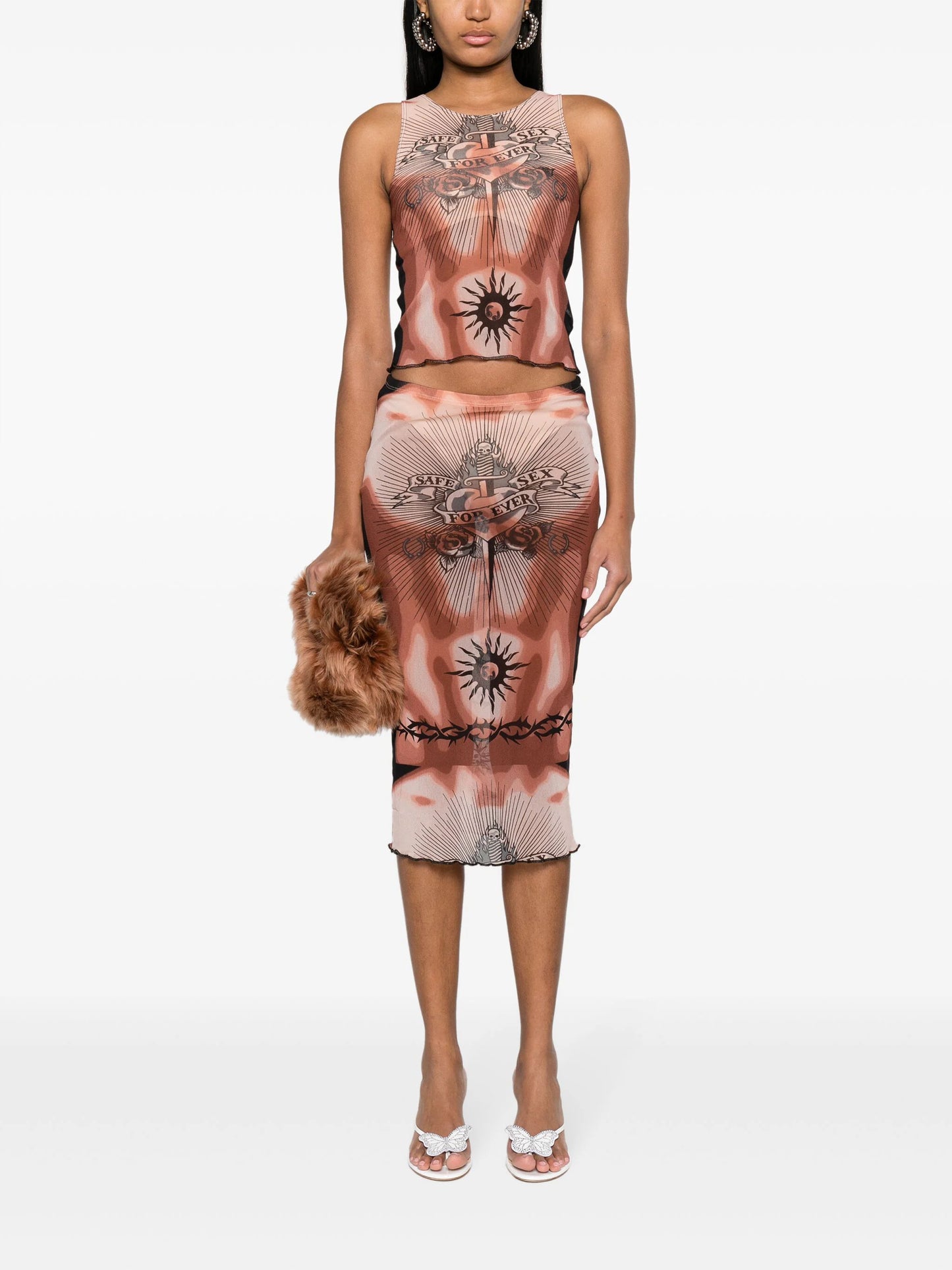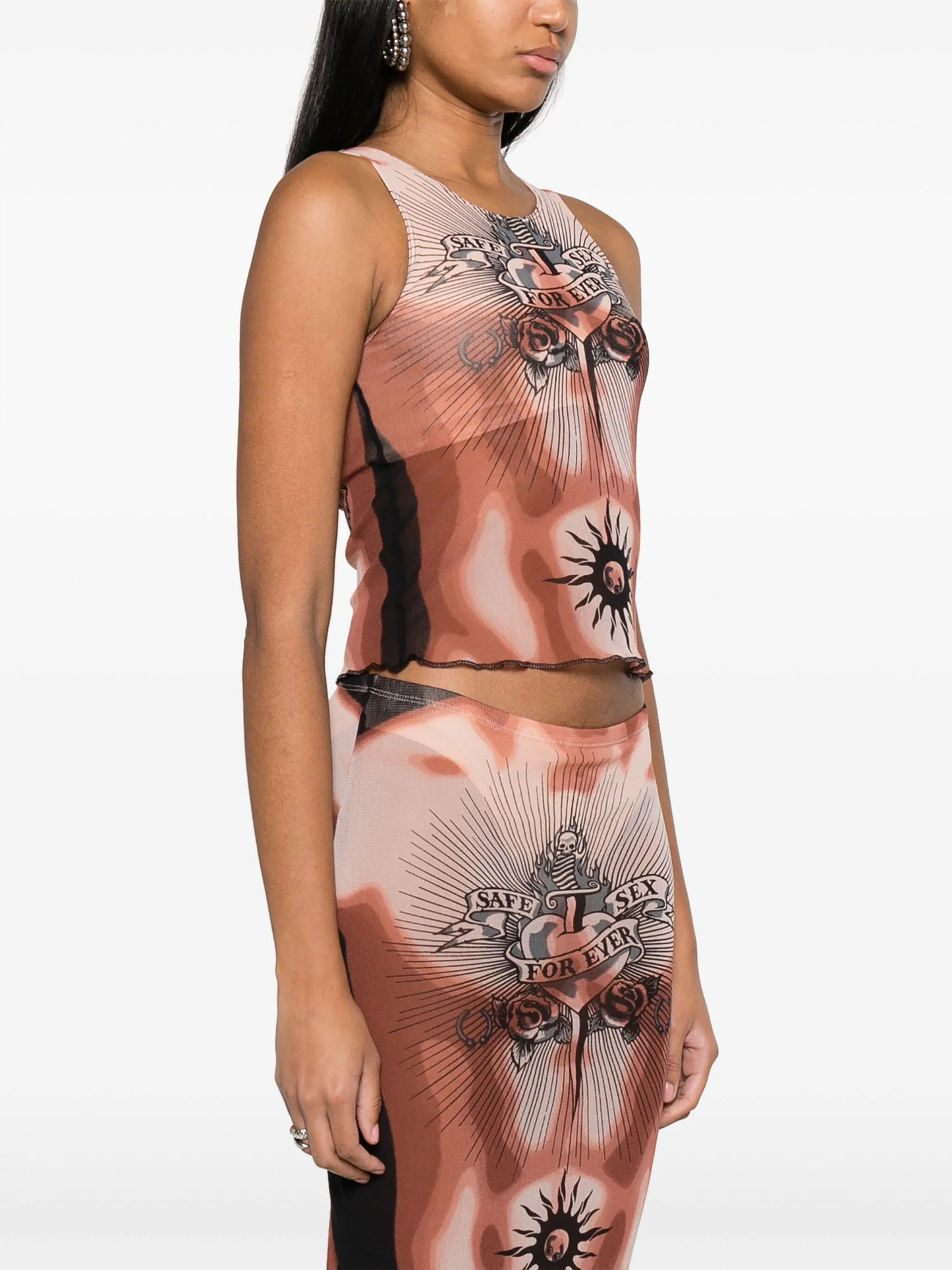 JEAN PAUL GAULTIER WOMEN Graphic Printed Tank Top Nude/Brown/Black