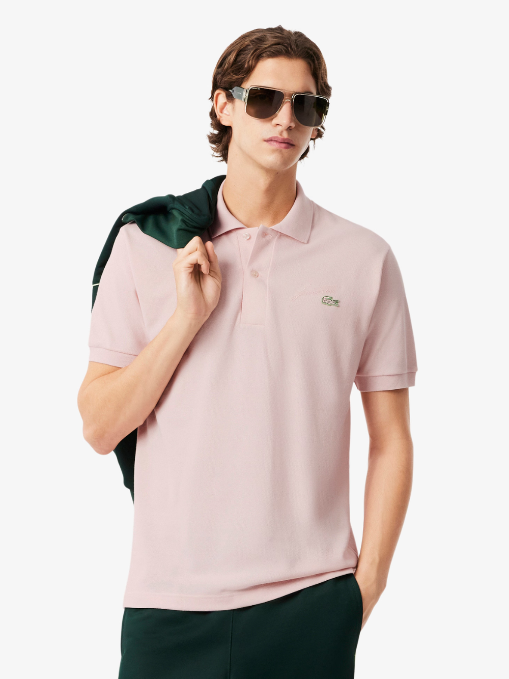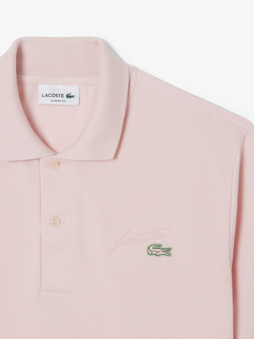 LACOSTE Classic Fit Embroidery Detail Piqué Polo Shirt Light Pink