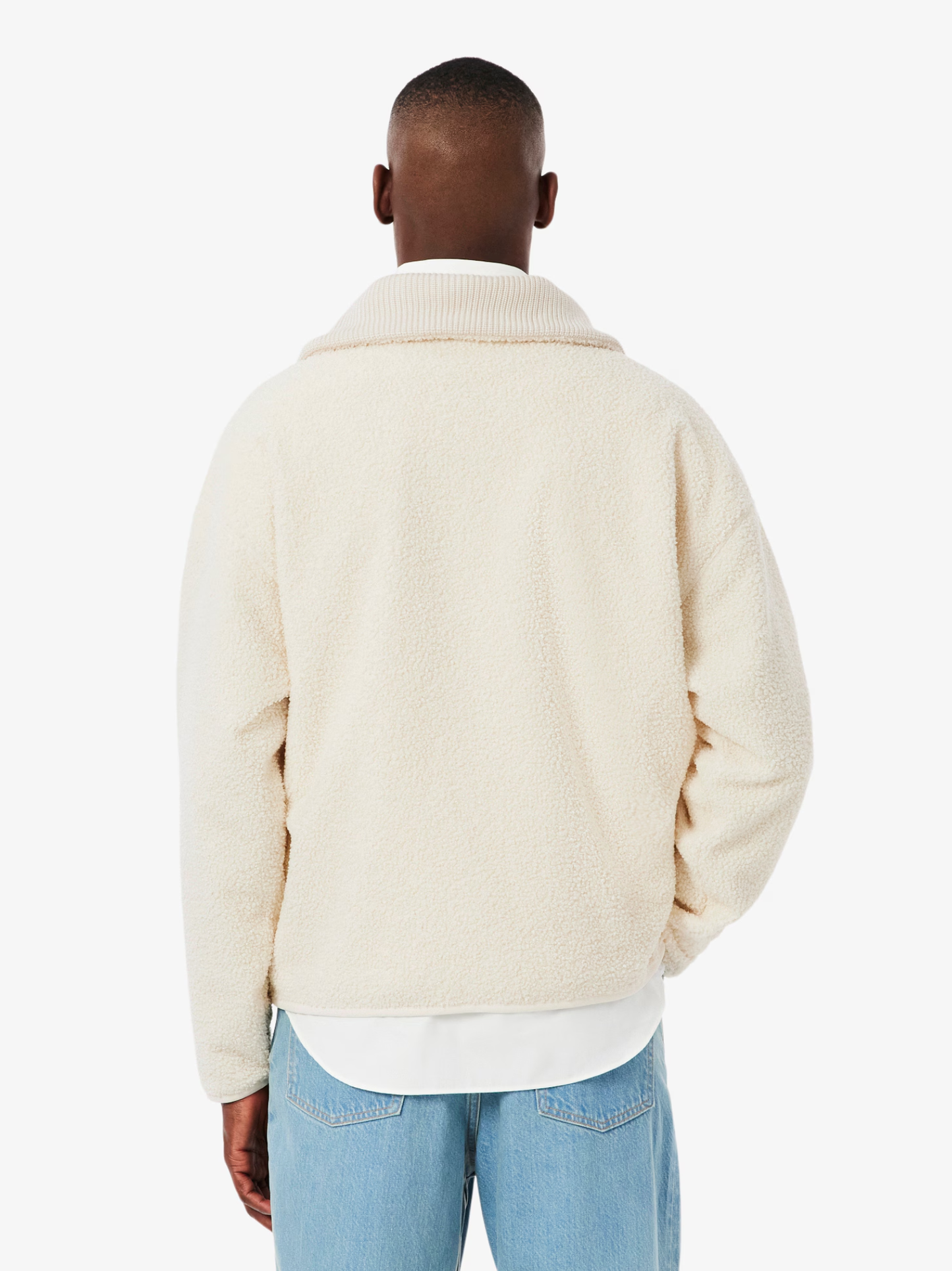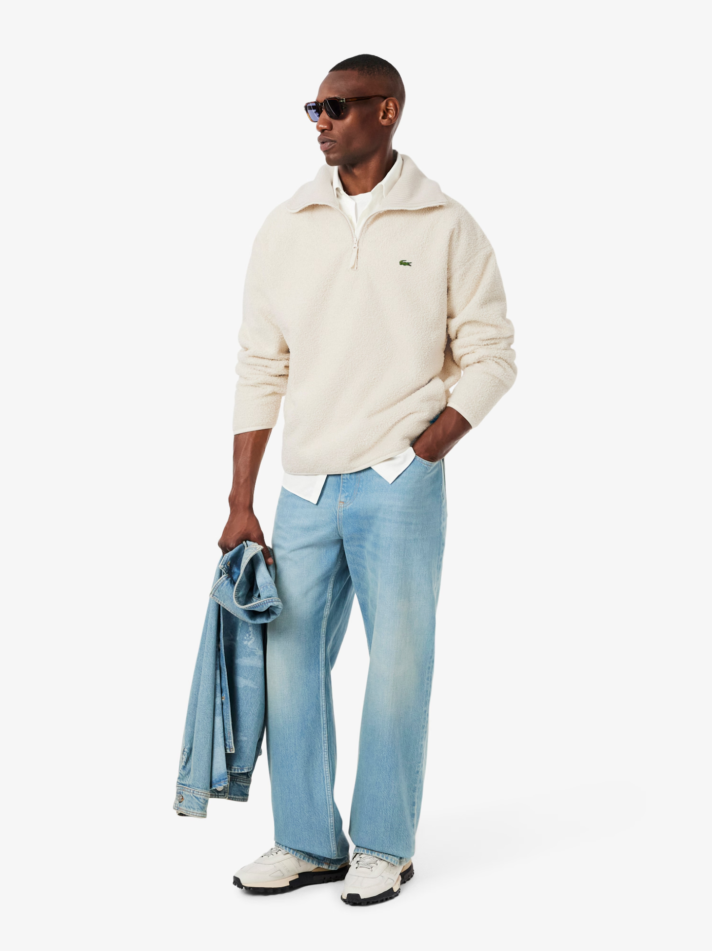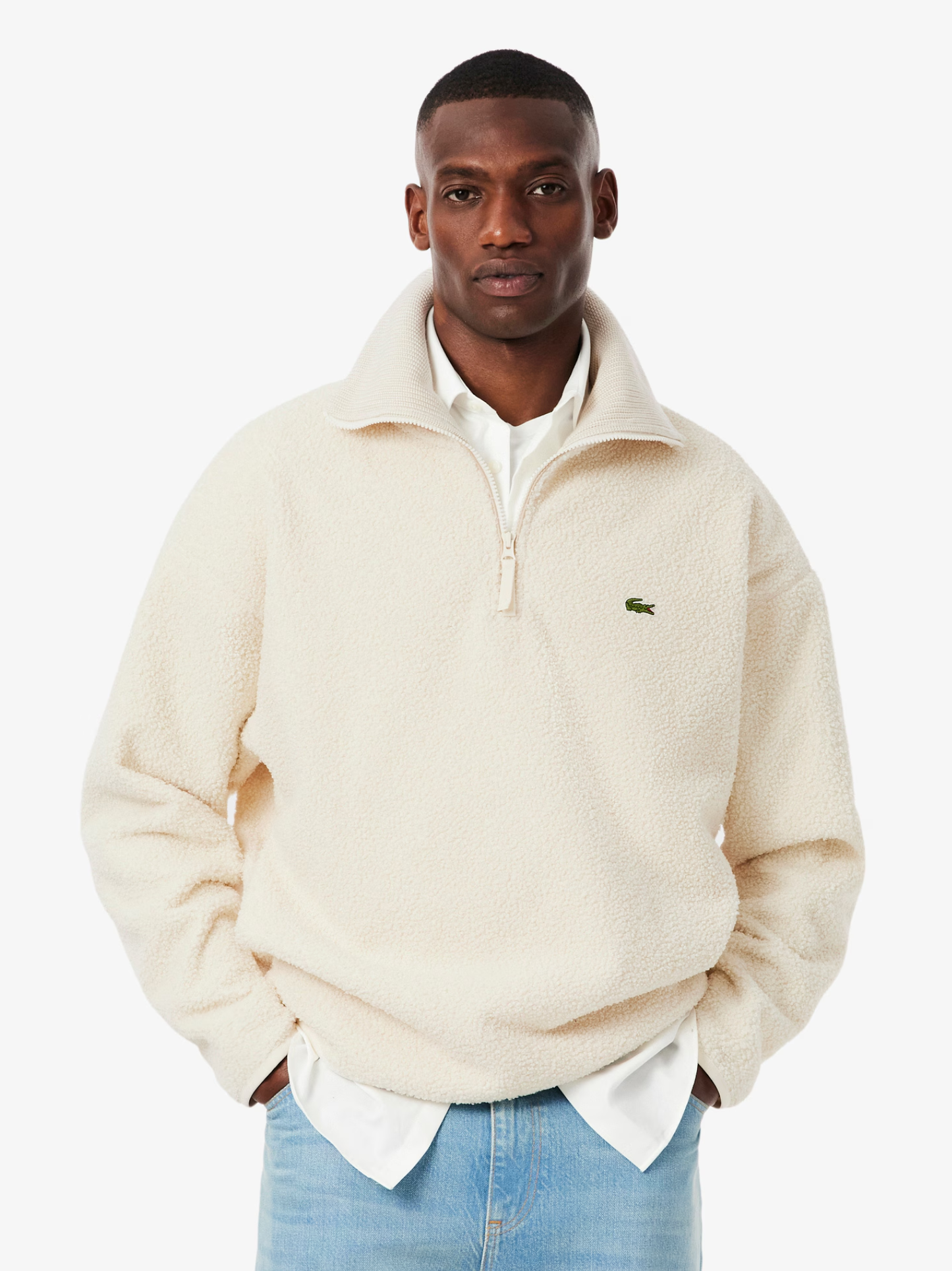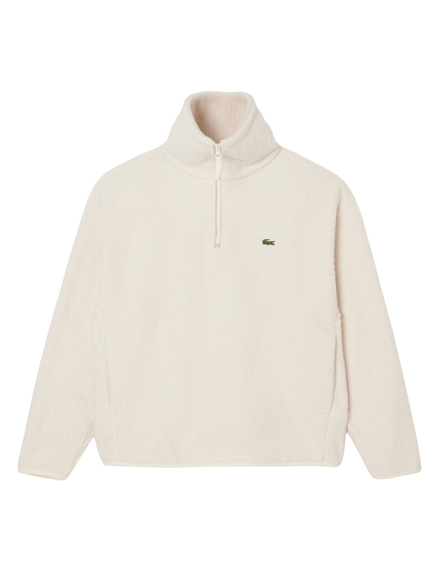LACOSTE High Zipped Neck Polar Fleece Sweatshirt Ecru White