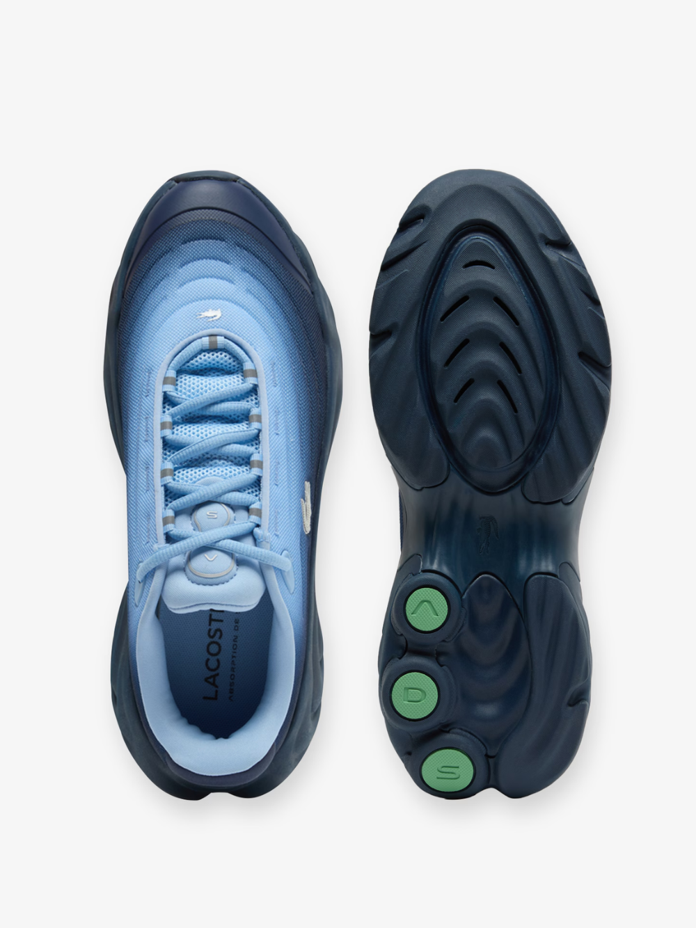 The Spinor offers a futuristic new vision of footwear design from Lacoste. Featuring bold proportions, an elegant ombré upper with debossed lines, and an innovative sole, with motifs inspired by the waves crocodiles make when leaving the water. A bold style, finished with reflective details.