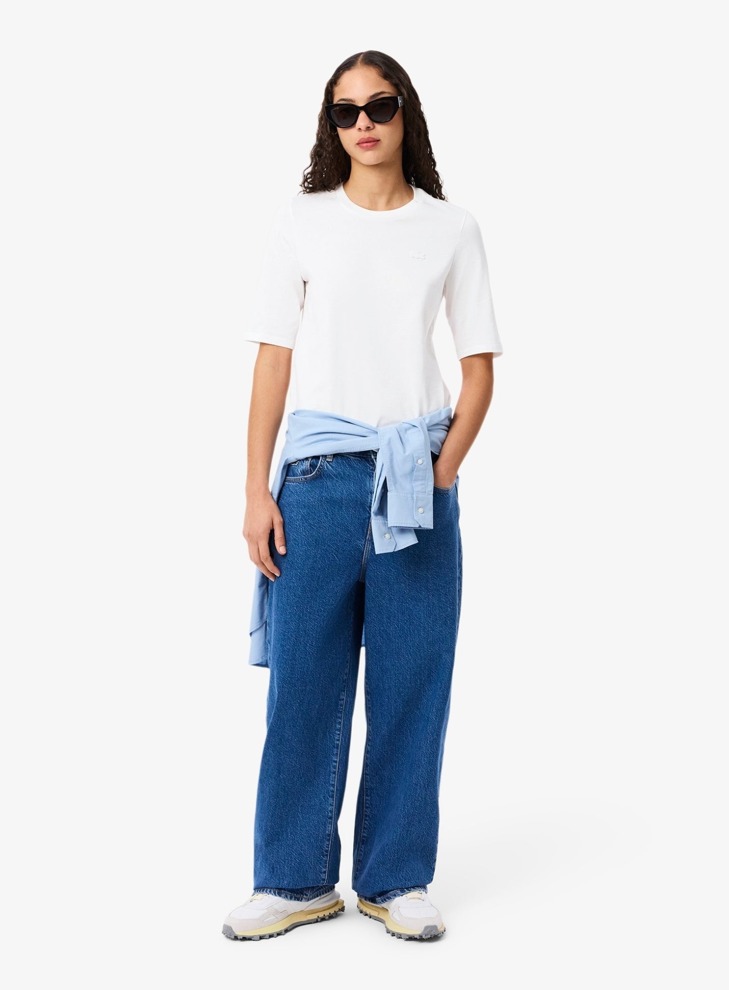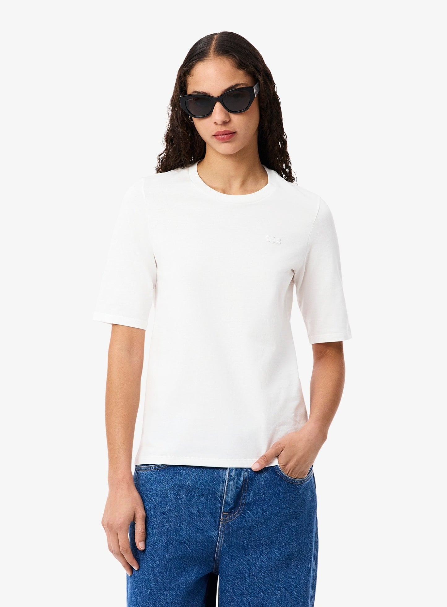 LACOSTE WOMEN Soft Cotton Three Quarter Sleeve T-shirt White