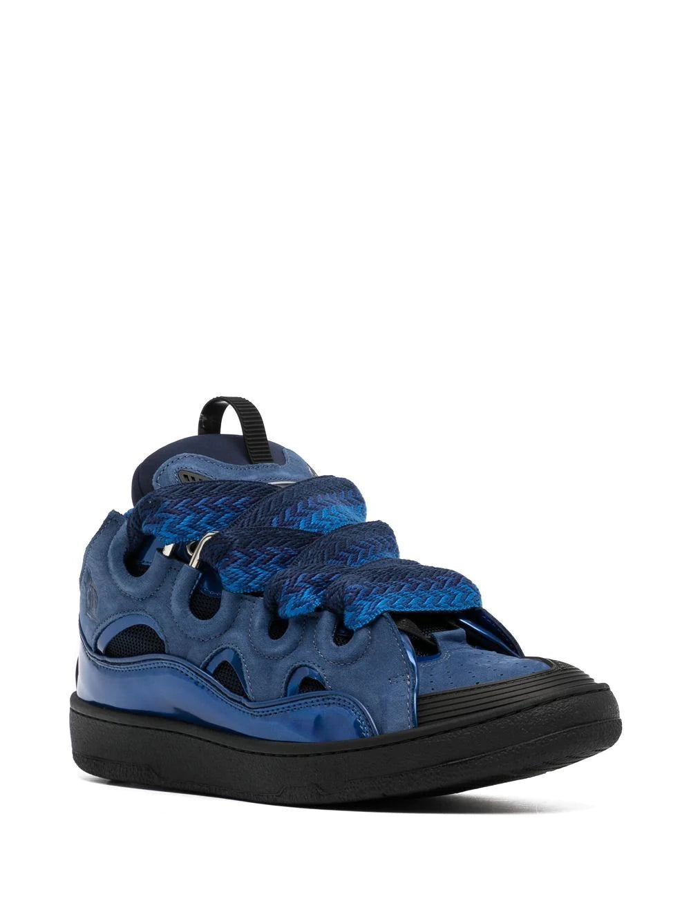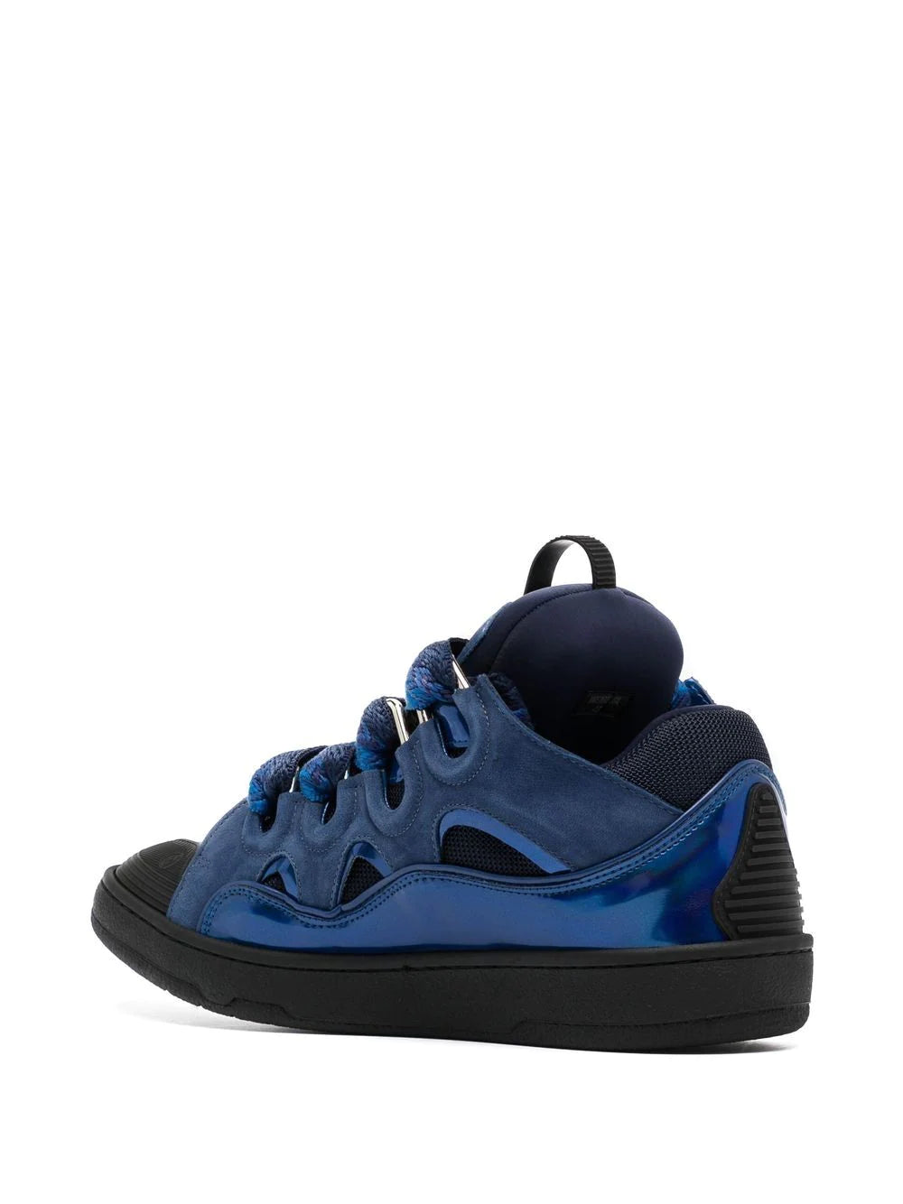 LANVIN Metallic Leather Curb Sneakers Majorelle Blue