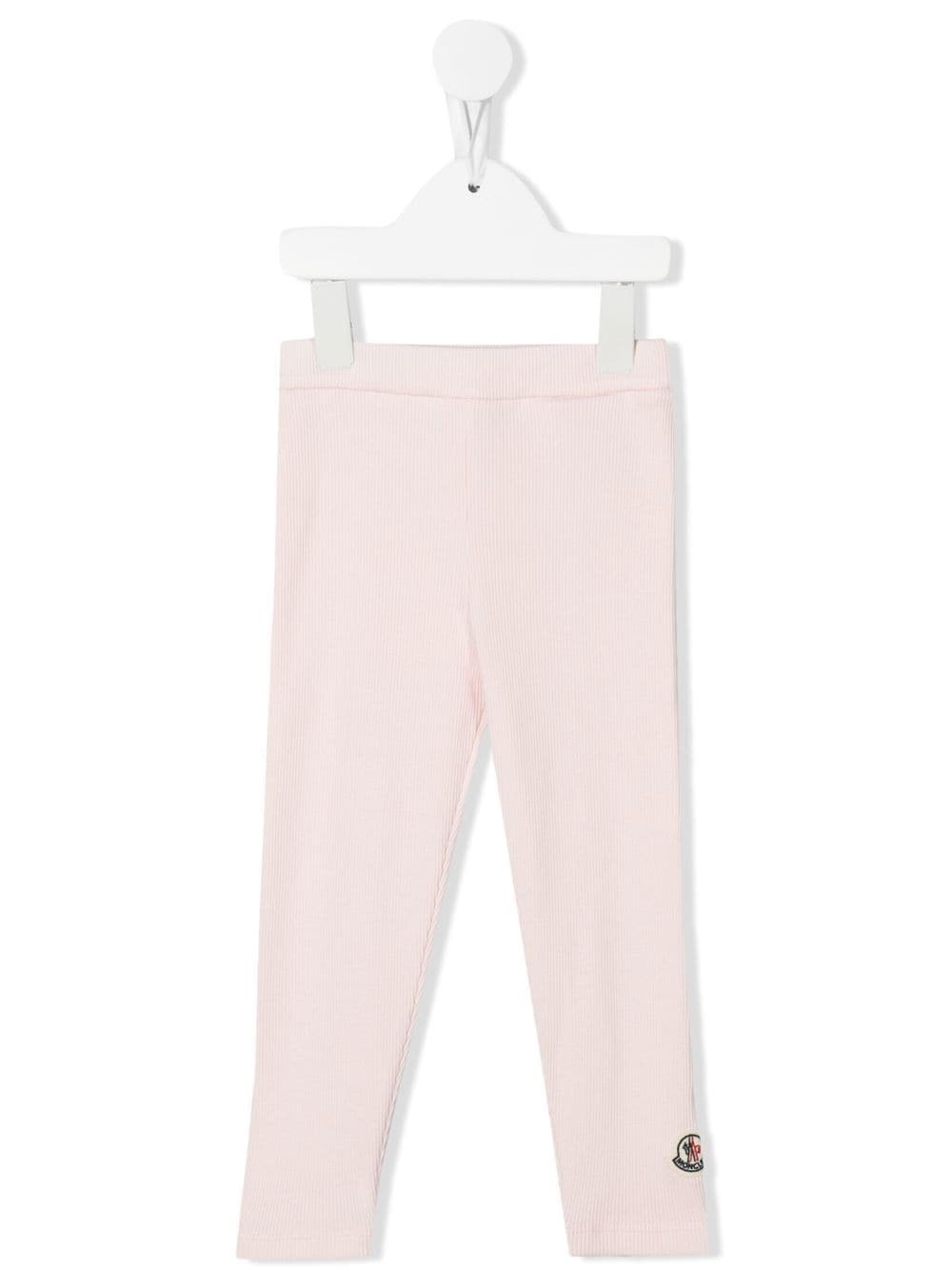 MONCLER BABY Ribbed-knit Logo-patch Leggings Pastel Pink