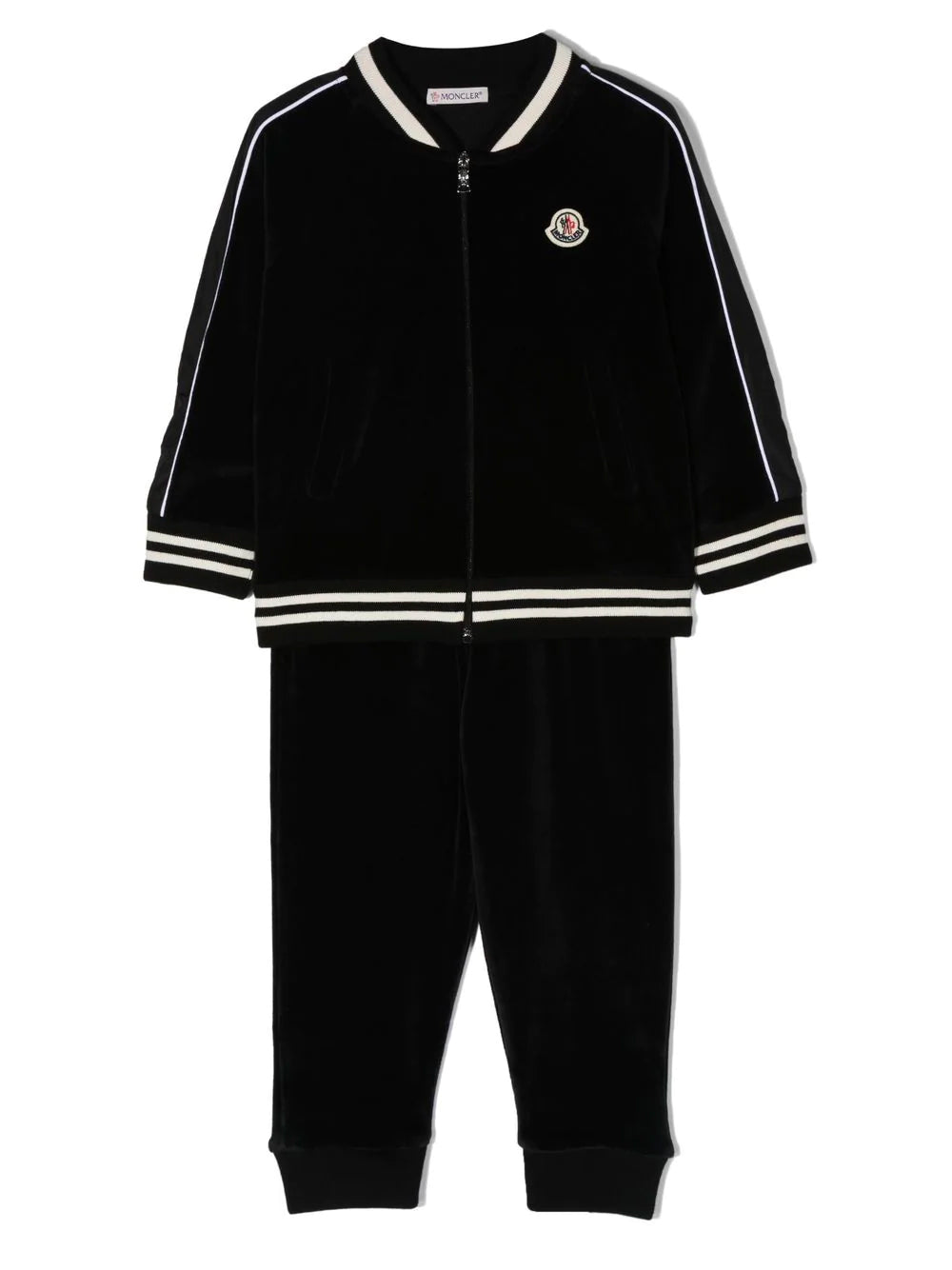 MONCLER BABY Stripe-Trim Velour Tracksuit Set Black