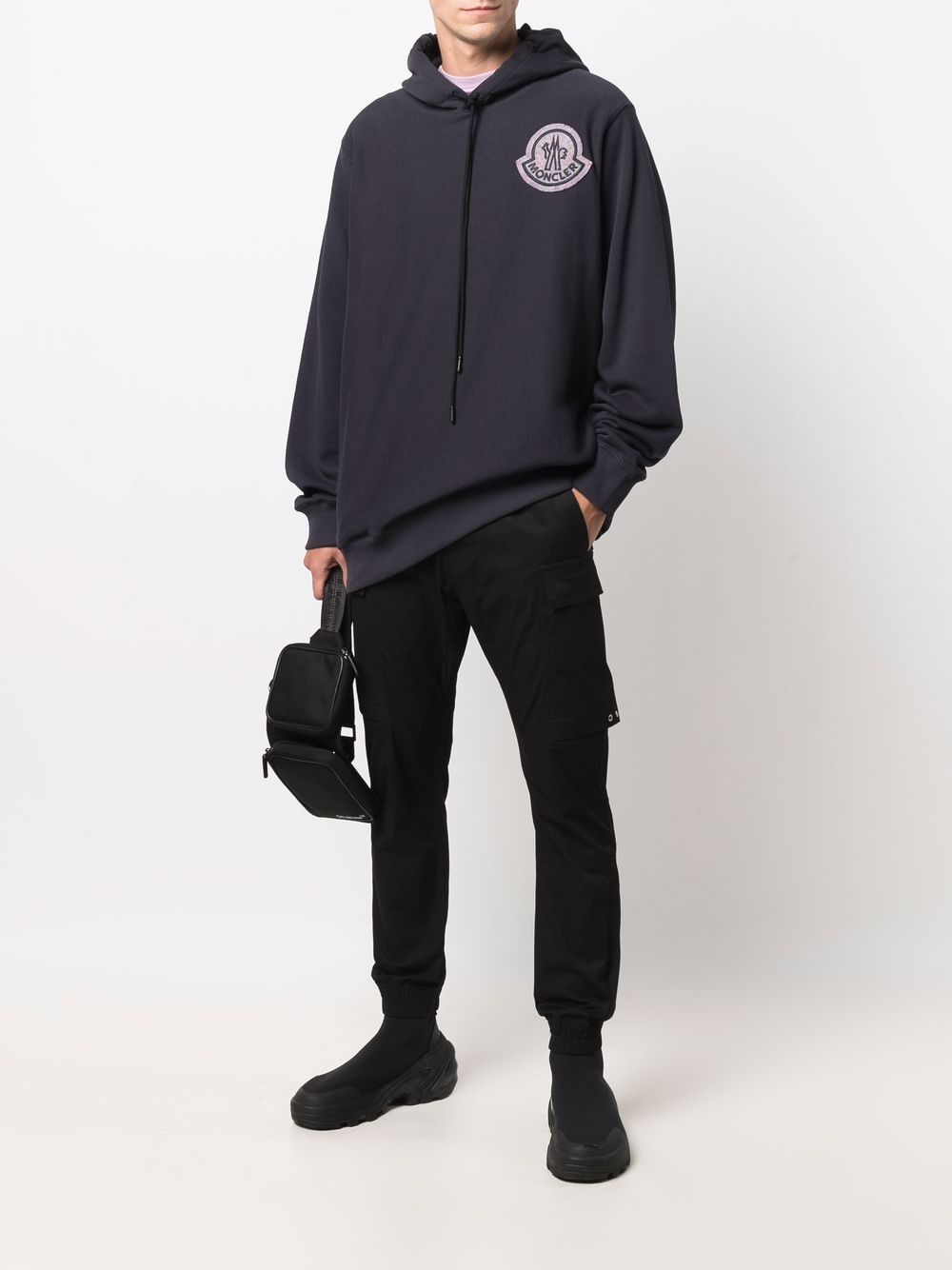 MONCLER GENIUS X 2 MONCLER 1952 Logo Patch Hoodie Navy