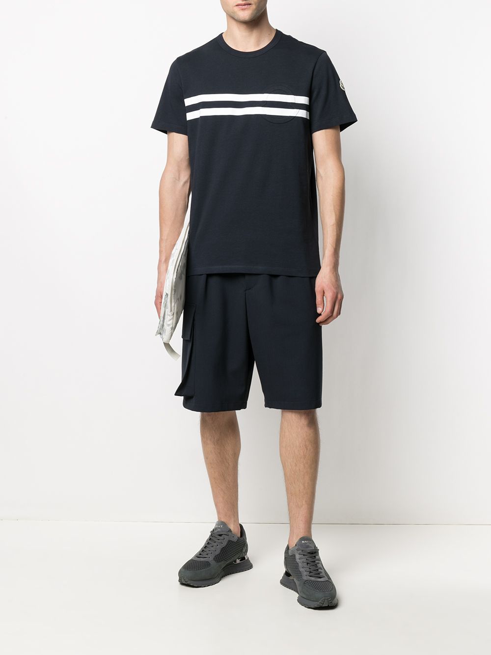 MONCLER Stripe Logo T-Shirt Navy