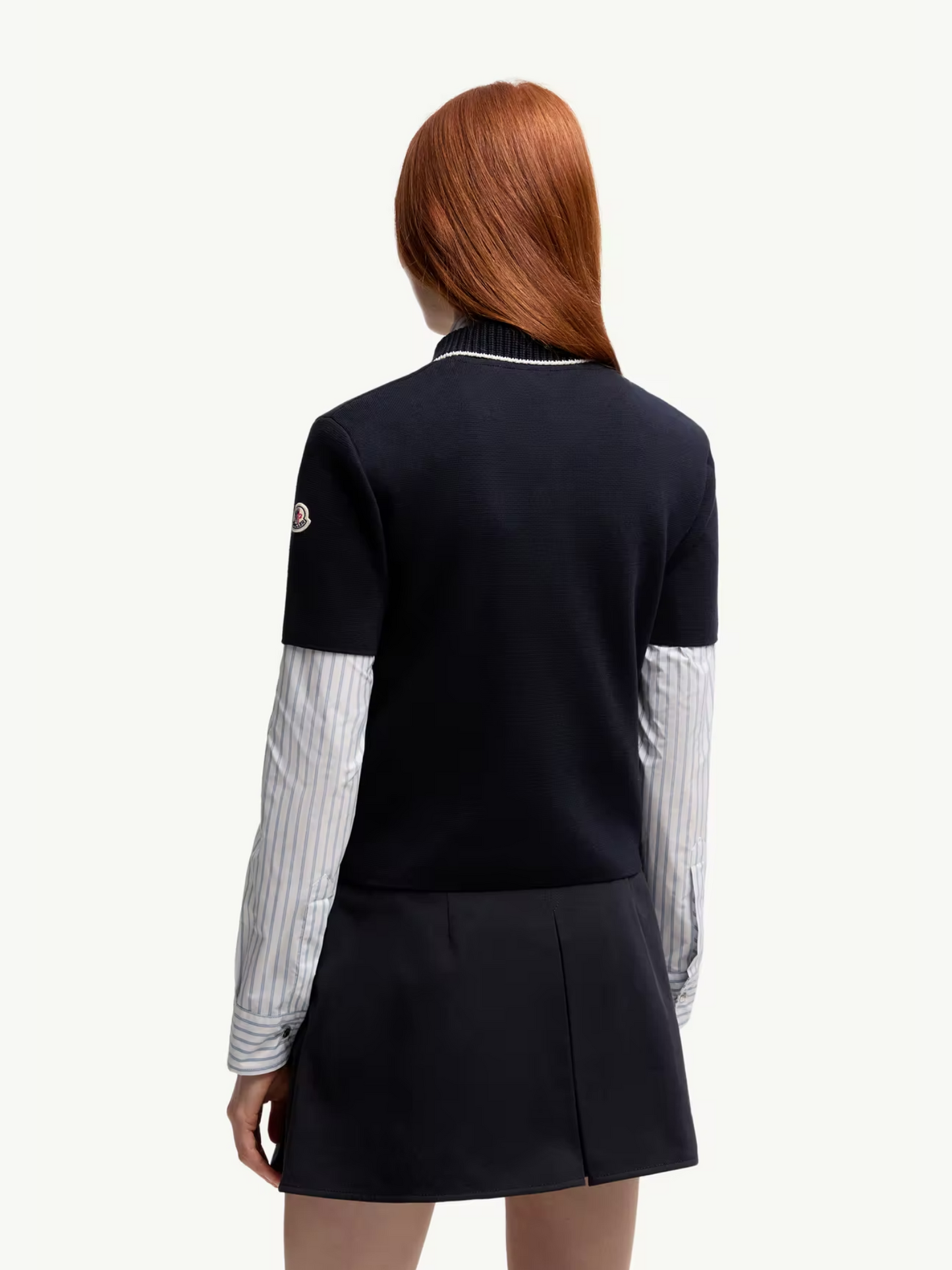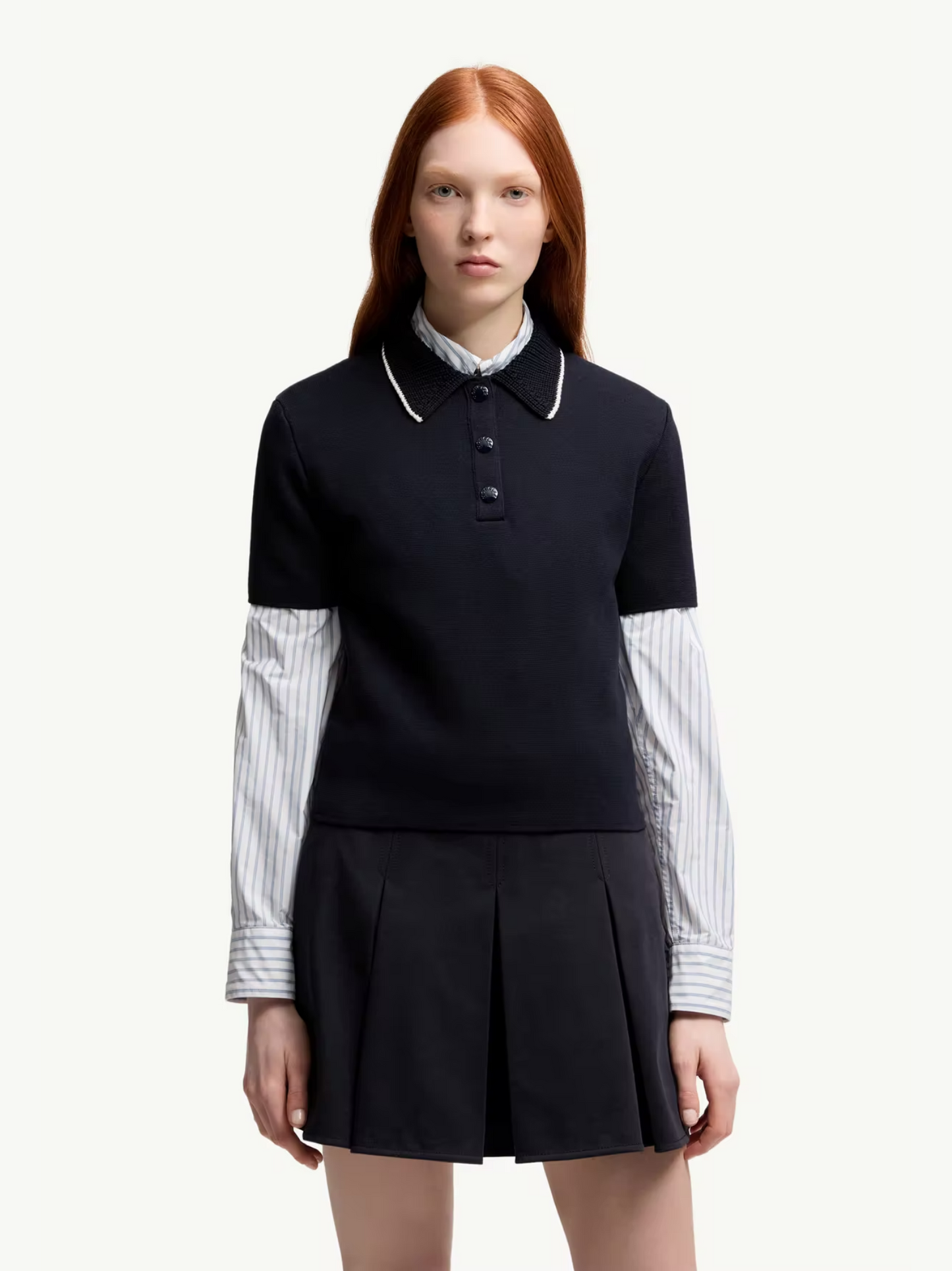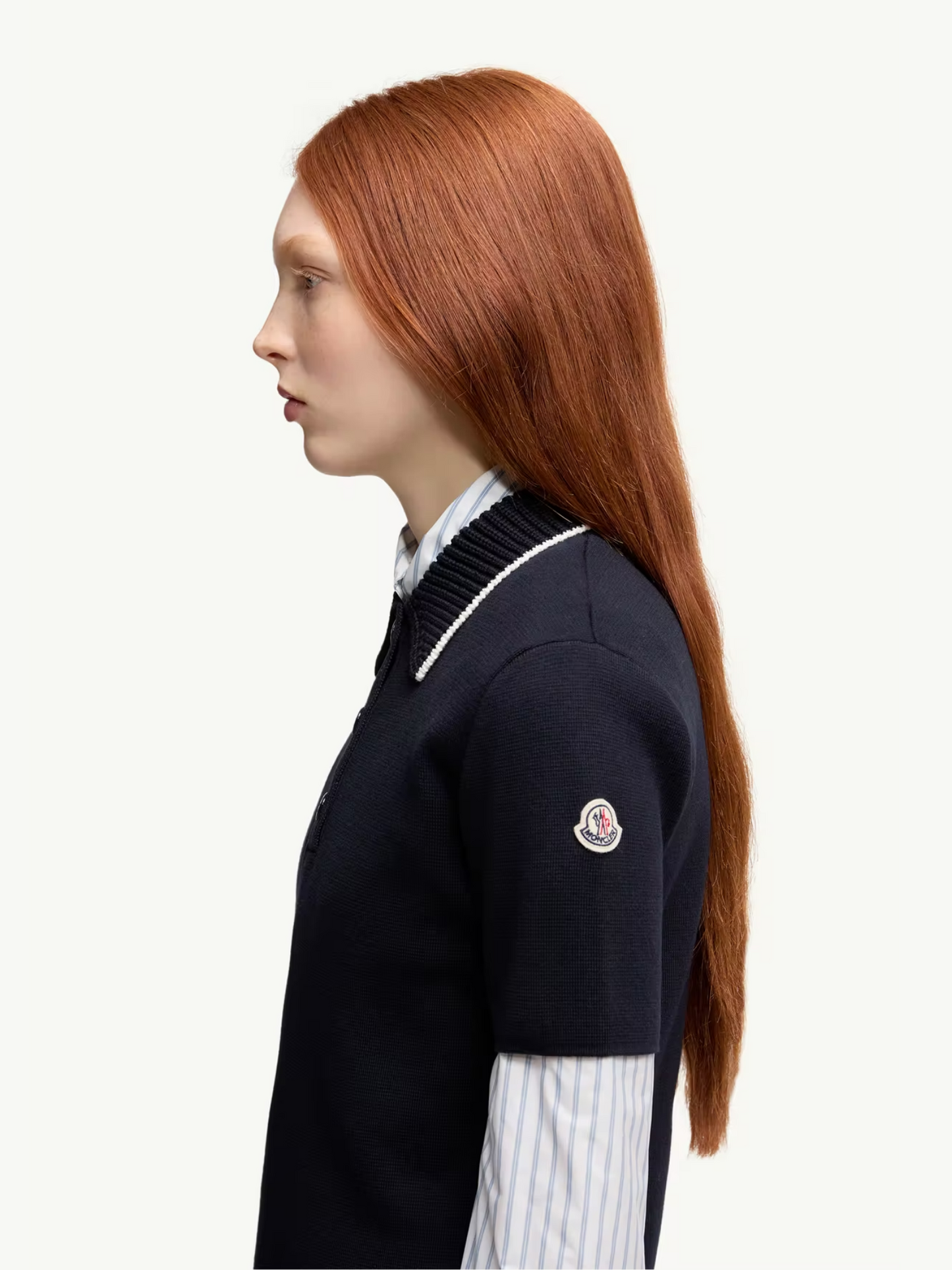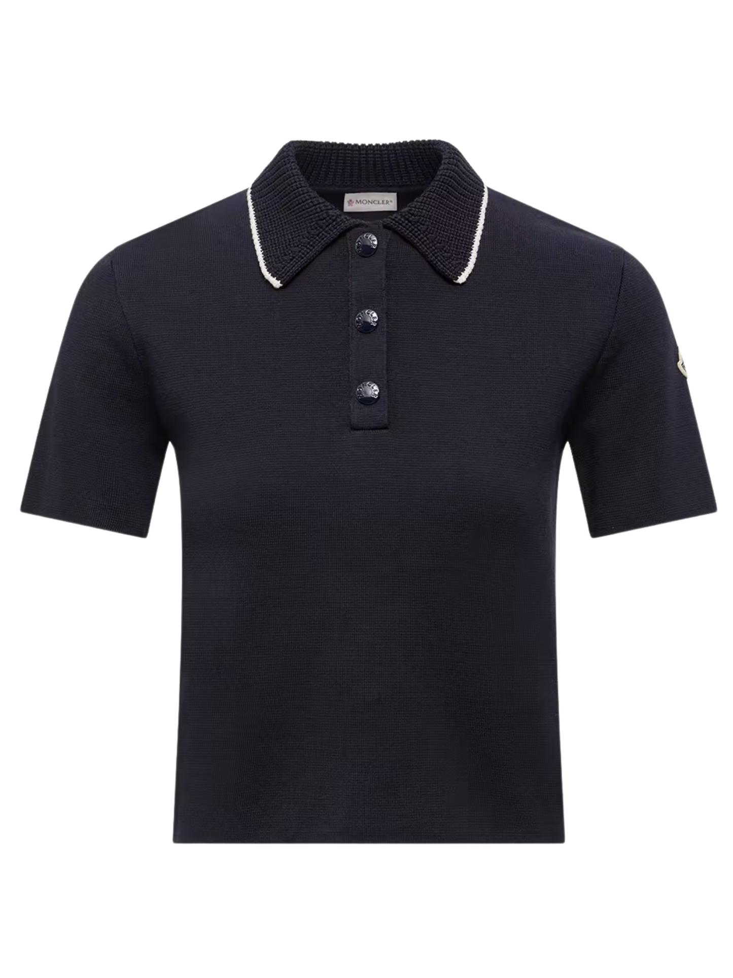 MONCLER WOMEN Knit Cotton Polo Shirt Navy Blue