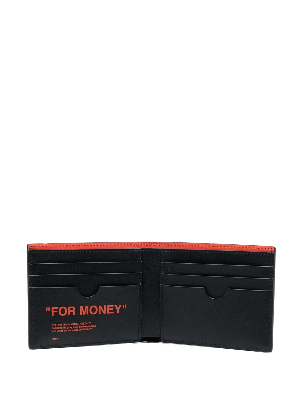 Off-White's unique edgy style takes on a literal approach with the brand's signature quote motifs. Here, this bi-fold wallet is adorned with a contrasting 'For Money' motif on the front and inside.