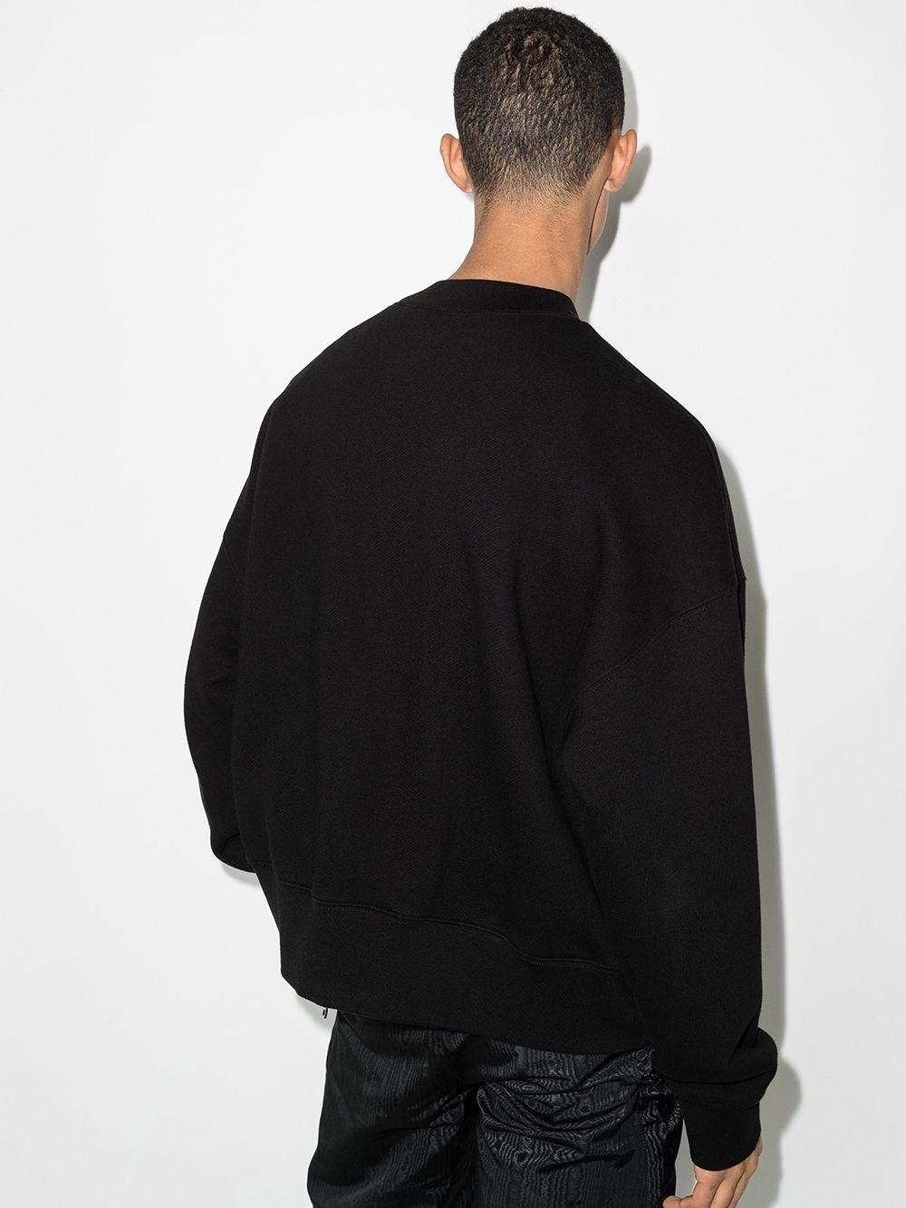 black cotton bear motif crew neck drop shoulder long sleeves straight hem ribbed edge